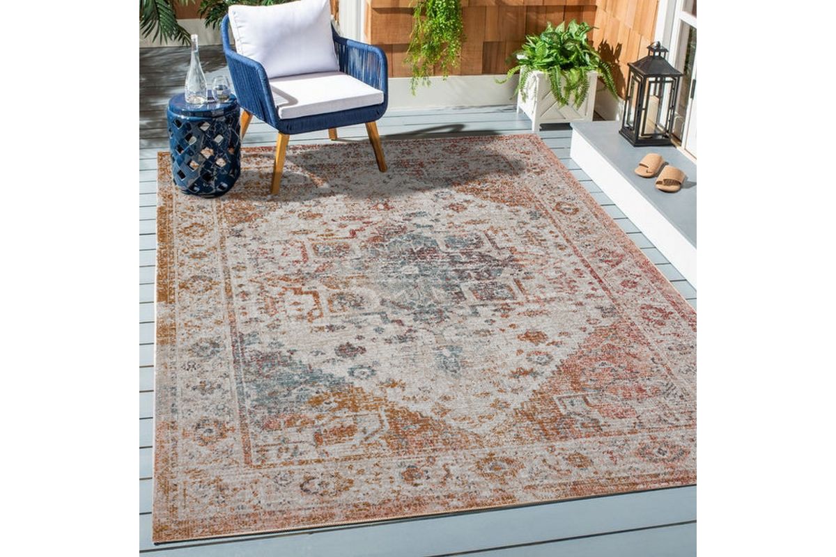 For the perfect blend of function and style, here's the indoor/outdoor area rug for you. Powerloomed in Turkey using 100% polypropylene, it is designed to last and withstand various weather conditions. This piece also comes with a soft texture and stain-resistant properties, making it a practical choice for any home. Whether you're looking to enhance your outdoor living area or add some cozy comfort to your indoor space, this rug has you covered.