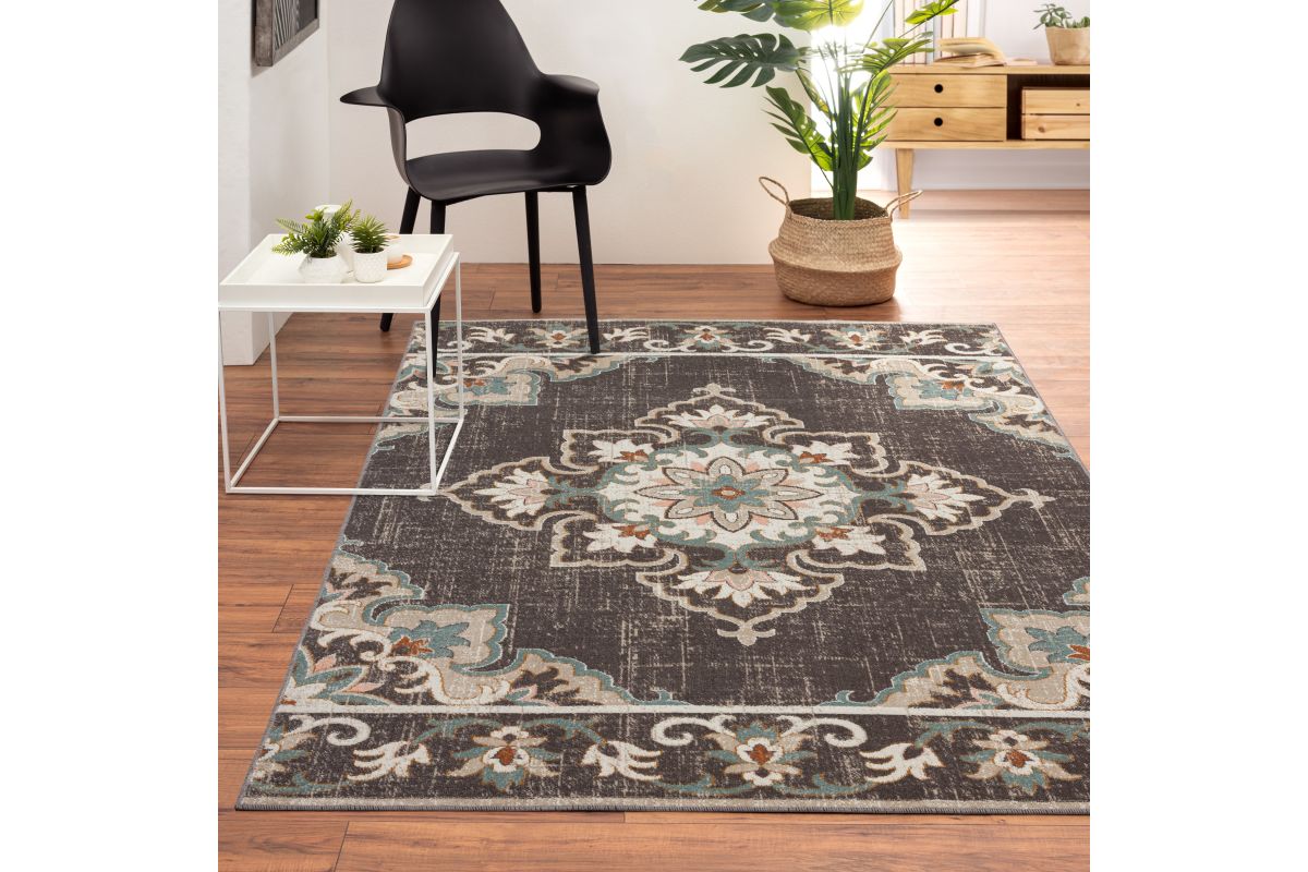 For the perfect blend of function and style, here's the indoor/outdoor area rug for you. Powerloomed in Turkey using 100% polypropylene, it is designed to last and withstand various weather conditions. This piece also comes with a soft texture and stain-resistant properties, making it a practical choice for any home. Whether you're looking to enhance your outdoor living area or add some cozy comfort to your indoor space, this rug has you covered.