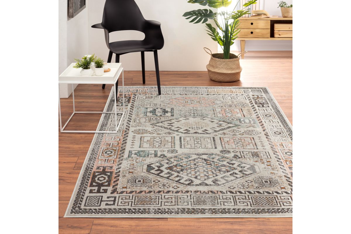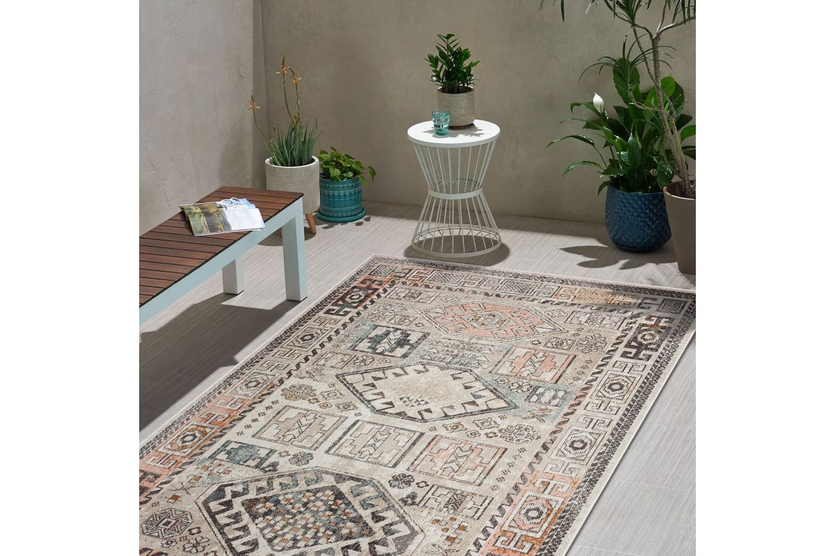For the perfect blend of function and style, here's the indoor/outdoor area rug for you. Powerloomed in Turkey using 100% polypropylene, it is designed to last and withstand various weather conditions. This piece also comes with a soft texture and stain-resistant properties, making it a practical choice for any home. Whether you're looking to enhance your outdoor living area or add some cozy comfort to your indoor space, this rug has you covered.