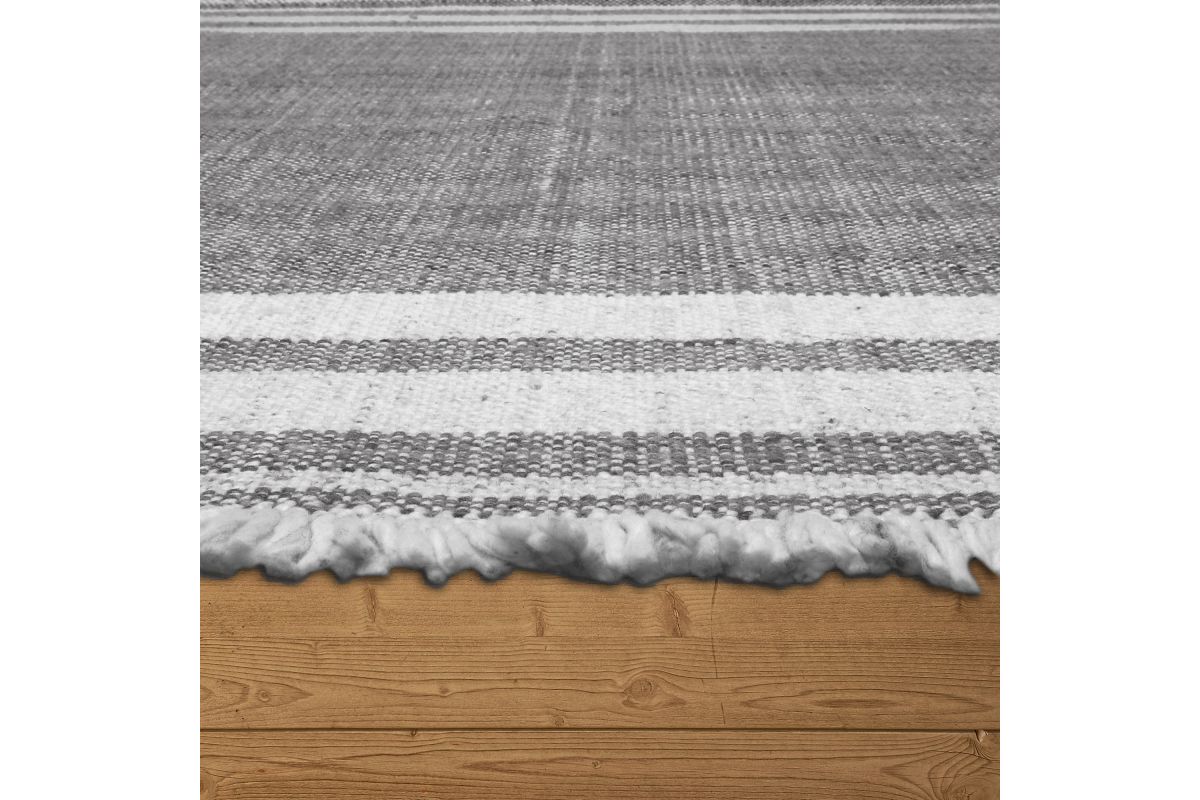 This handwoven indoor area rug is a versatile and eco-friendly addition to any space. Made from 100% PET yarn, it's durable and easy to clean, making it perfect for high-traffic areas. The striped pattern and fringes on both ends add a touch of texture and style, while the earth tones create a warm and inviting atmosphere. Handcrafted in India, this rug is a unique piece that combines traditional techniques with modern materials, ensuring both quality and sustainability. Whether you use it inside or outside, this rug will enhance the look and feel of your home.