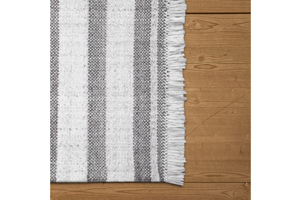 This handwoven indoor area rug is a versatile and eco-friendly addition to any space. Made from 100% PET yarn, it's durable and easy to clean, making it perfect for high-traffic areas. The striped pattern and fringes on both ends add a touch of texture and style, while the earth tones create a warm and inviting atmosphere. Handcrafted in India, this rug is a unique piece that combines traditional techniques with modern materials, ensuring both quality and sustainability. Whether you use it inside or outside, this rug will enhance the look and feel of your home.