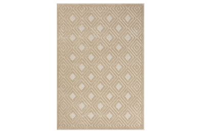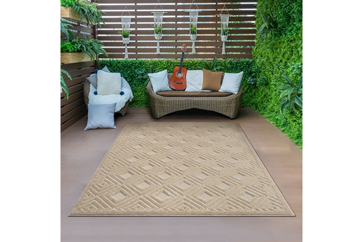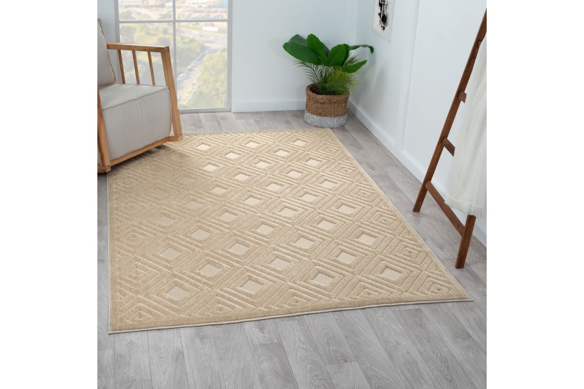 Jazz up your living space with this versatile indoor/outdoor performance area rug. Expertly powerloomed in Turkey, this rug is crafted from 100% polypropylene, making it durable and stain resistant. The neutral color palette complements any decor style, while the intricately detailed geometric diamond design adds a subtle touch of sophistication. Perfect for high-traffic areas, this rug is ideal for adding comfort and style to your patio, porch, or living room.