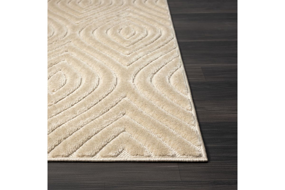 Jazz up your living space with this versatile indoor/outdoor performance area rug. Expertly powerloomed in Turkey, this rug is crafted from 100% polypropylene, making it durable and stain resistant. The neutral color palette complements any decor style, while the intricately detailed geometric ogee design adds a subtle touch of sophistication. Perfect for high-traffic areas, this rug is ideal for adding comfort and style to your patio, porch, or living room.