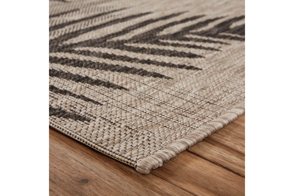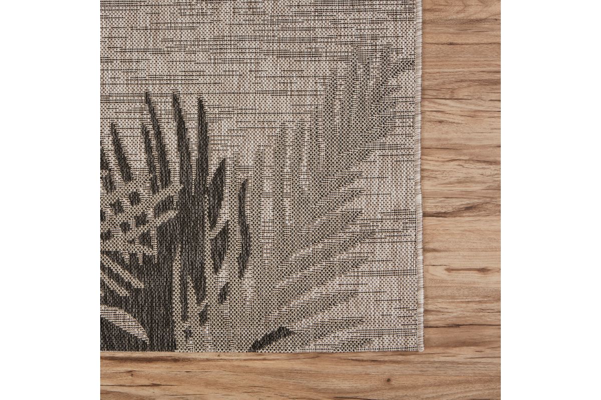 Transform any space with this versatile coastal flatweave area rug, perfect for indoor and outdoor use. Featuring a stylish black palm frond design on a beige background, it creates a striking foundation for your deck, patio, lanai, living room, or dining room. Power loomed from durable polypropylene fibers, this rug is lightweight, comfortable underfoot, and built to last. Its fade, stain, and moisture resistant construction ensures long-lasting beauty, whether placed indoors or outdoors. Measuring 7'9" x 9'5", it’s a spacious choice for larger patios, decks, or outdoor dining areas, creating a defined and comfortable foundation for entertaining. Complement a wide range of décor styles from tropical to contemporary with this easy-to-maintain, high-quality rug.