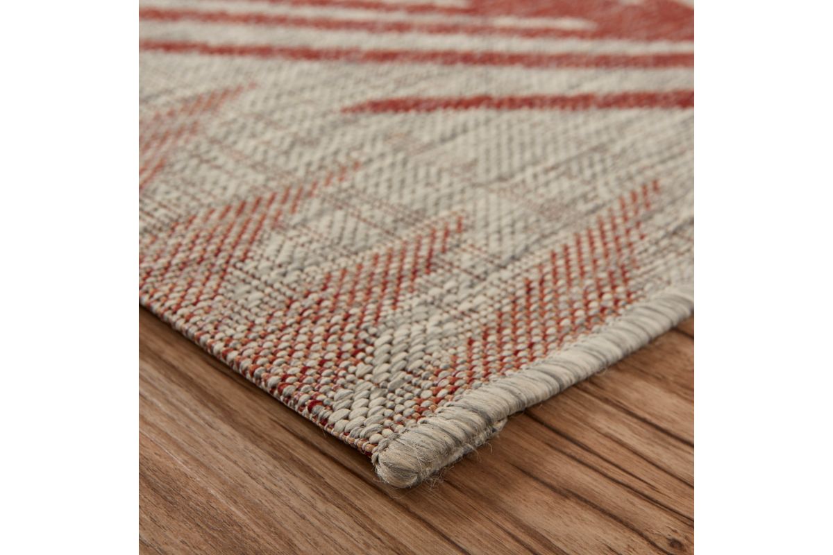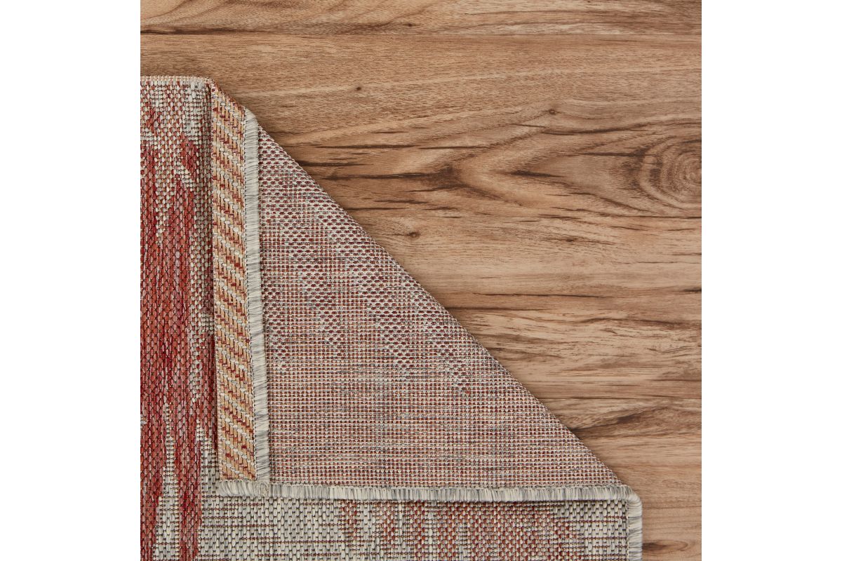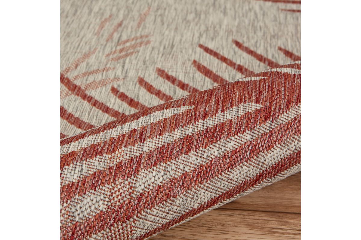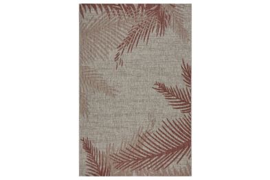 Transform any space with this versatile coastal flatweave area rug, perfect for indoor and outdoor use. Featuring a stylish red palm frond design on a beige background, it creates a striking foundation for your deck, patio, lanai, living room, or bedroom. Power loomed from durable polypropylene fibers, this rug is lightweight, comfortable underfoot, and built to last. Its fade, stain, and moisture resistant construction ensures long-lasting beauty, whether placed indoors or outdoors. Measuring 5' x 7', it’s an ideal size for patios, decks, or porches, offering a stylish foundation for your outdoor seating or dining area. Complement a wide range of décor styles from tropical to contemporary with this easy-to-maintain, high-quality rug.