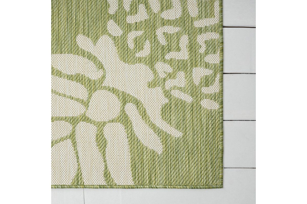 Jazz up your indoor or outdoor space with our nature-inspired area rug. Powerloomed in Turkey using 100% polypropylene, this indoor/outdoor rug is both weather and stain resistant. With its vibrant and eye-catching design, it is perfect for those who want to bring a touch of the great outdoors into their home. Whether placed in your living room, bedroom or outside on your deck, this charming area rug will provide a stylish and functional addition to your home decor.