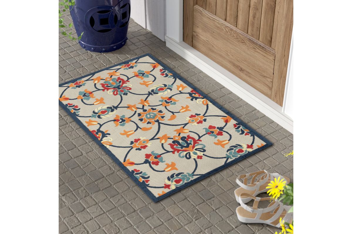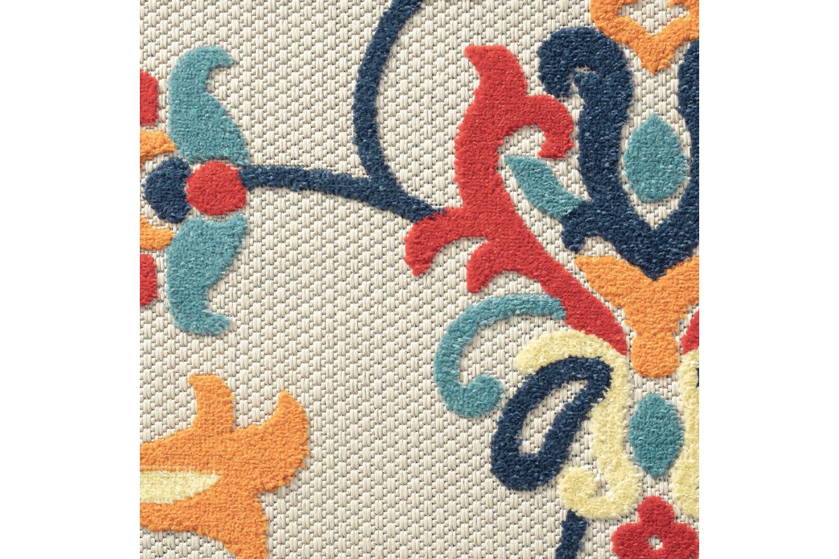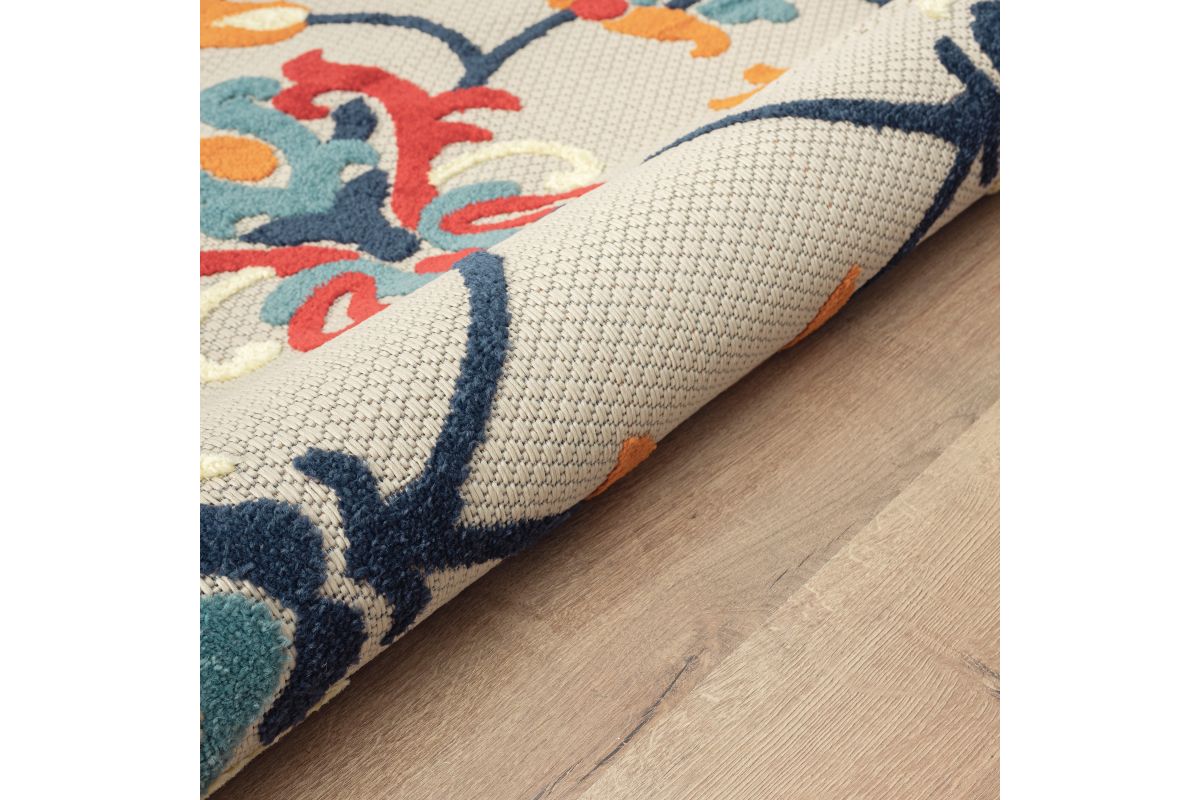 Transform any space with this versatile contemporary high-low area rug, perfect for indoor and outdoor use. Featuring a stylish floral damask design in shades of orange and blue on a beige background, it creates a striking foundation for your deck, patio, lanai, entryway, or hallway. Power loomed from durable polypropylene fibers, this rug is lightweight, comfortable underfoot, and built to last. Its fade, stain, and moisture resistant construction ensures long-lasting beauty, whether placed indoors or outdoors. Measuring 2'0" x 3'0", it’s ideal for small spaces such as bathrooms, apartments, dorms, and entryways. Complement a wide range of décor styles from traditional to contemporary with this easy-to-maintain, high-quality rug.