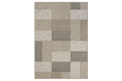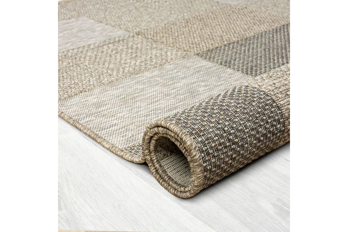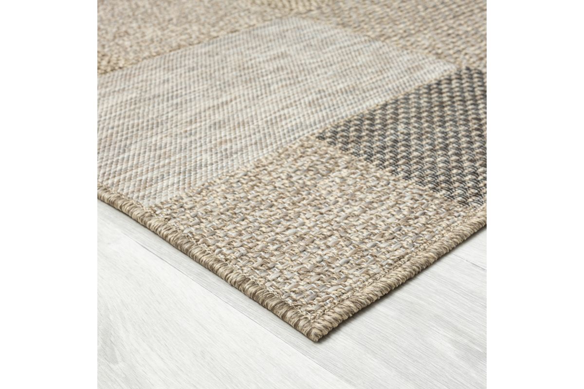 Accent your home with this modern color-block indoor and outdoor safe area rug. Inspired from the natural tones and designs of jute pieces, this rug features over five different patterns and textures to bring a stunning natural look to your outdoor space. Powerloomed in Egypt from stain and fade resistant polypropylene threads, this rug is the ideal piece for everyday use. Perfectly suited for living rooms, dining rooms, kitchens, bedrooms, and patios, add aesthetic functionality with this neutral long-lasting, and durable indoor and outdoor safe rug.