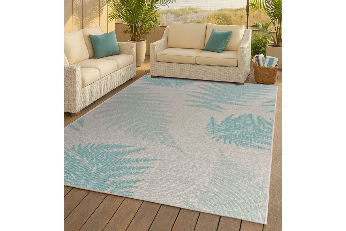 Level up your home improvement game with this charming indoor-outdoor area rug. Power-loomed in Turkey using 95% polypropylene and 5% polyester, this floor piece is soft underfoot yet highly durable. Its low pile makes cleaning easy and makes it perfect for high-traffic spaces like living rooms, dining rooms, patios, or lanais. Featuring nature-inspired designs, this stylish area rug adds visual interest and instantly elevates any room.