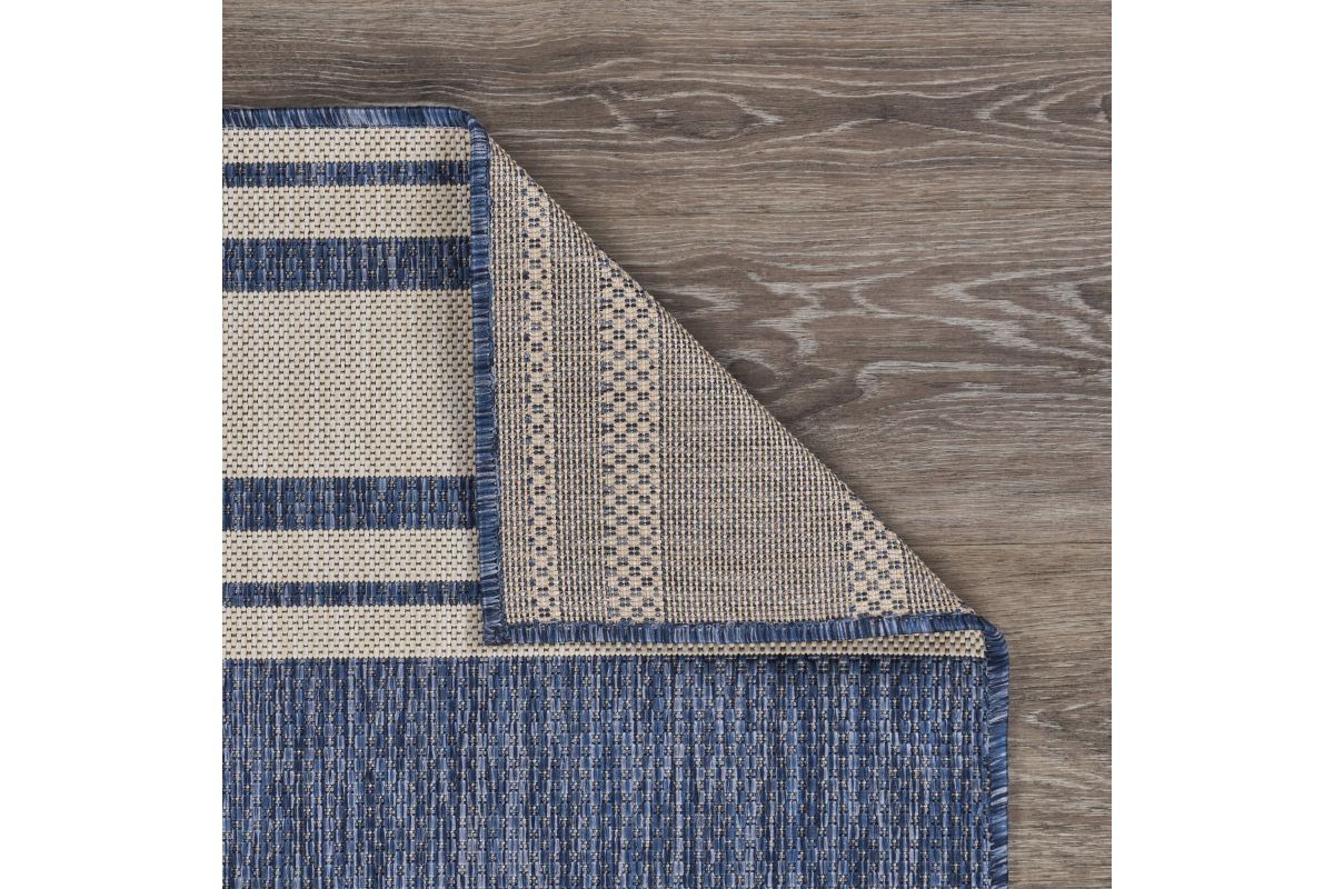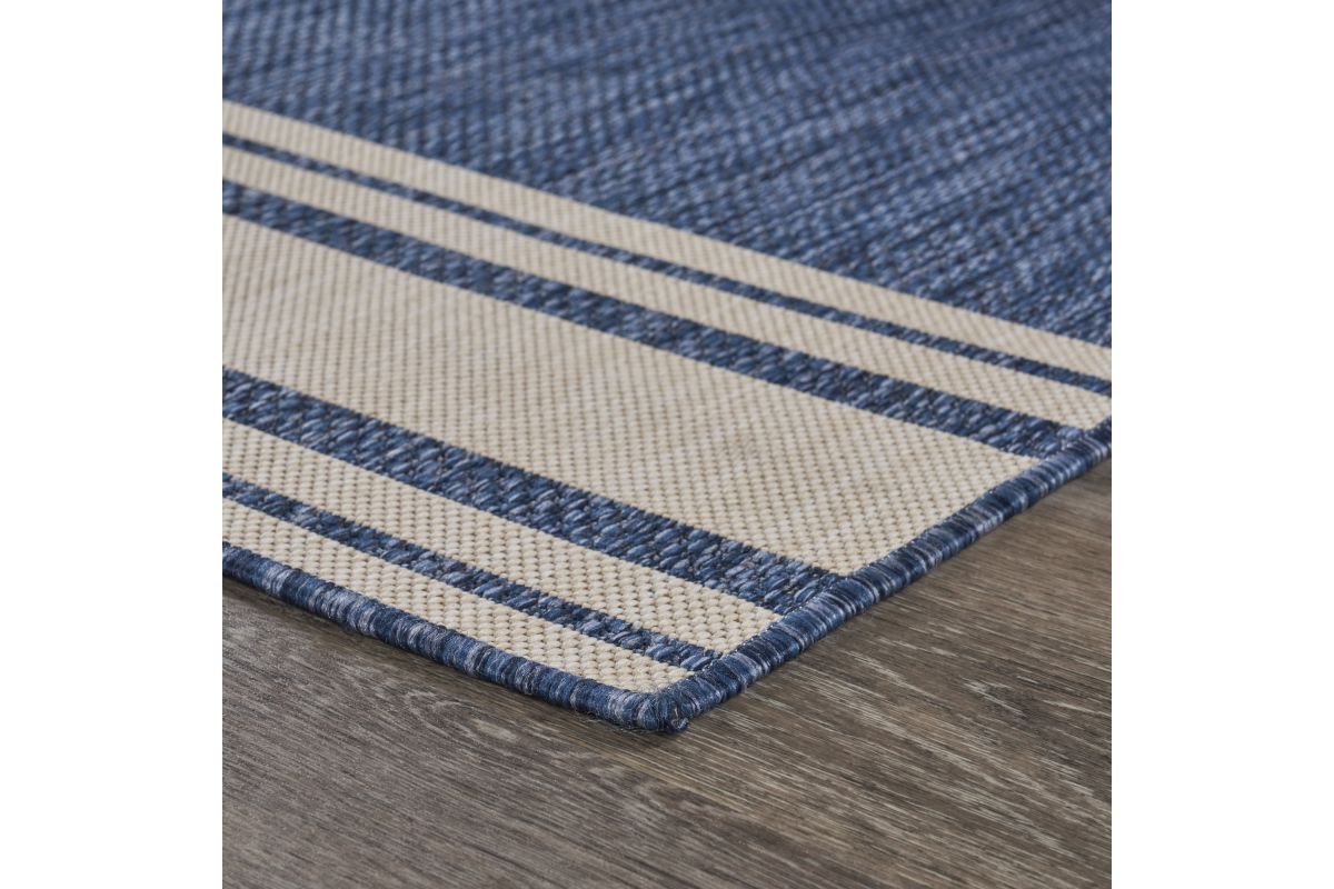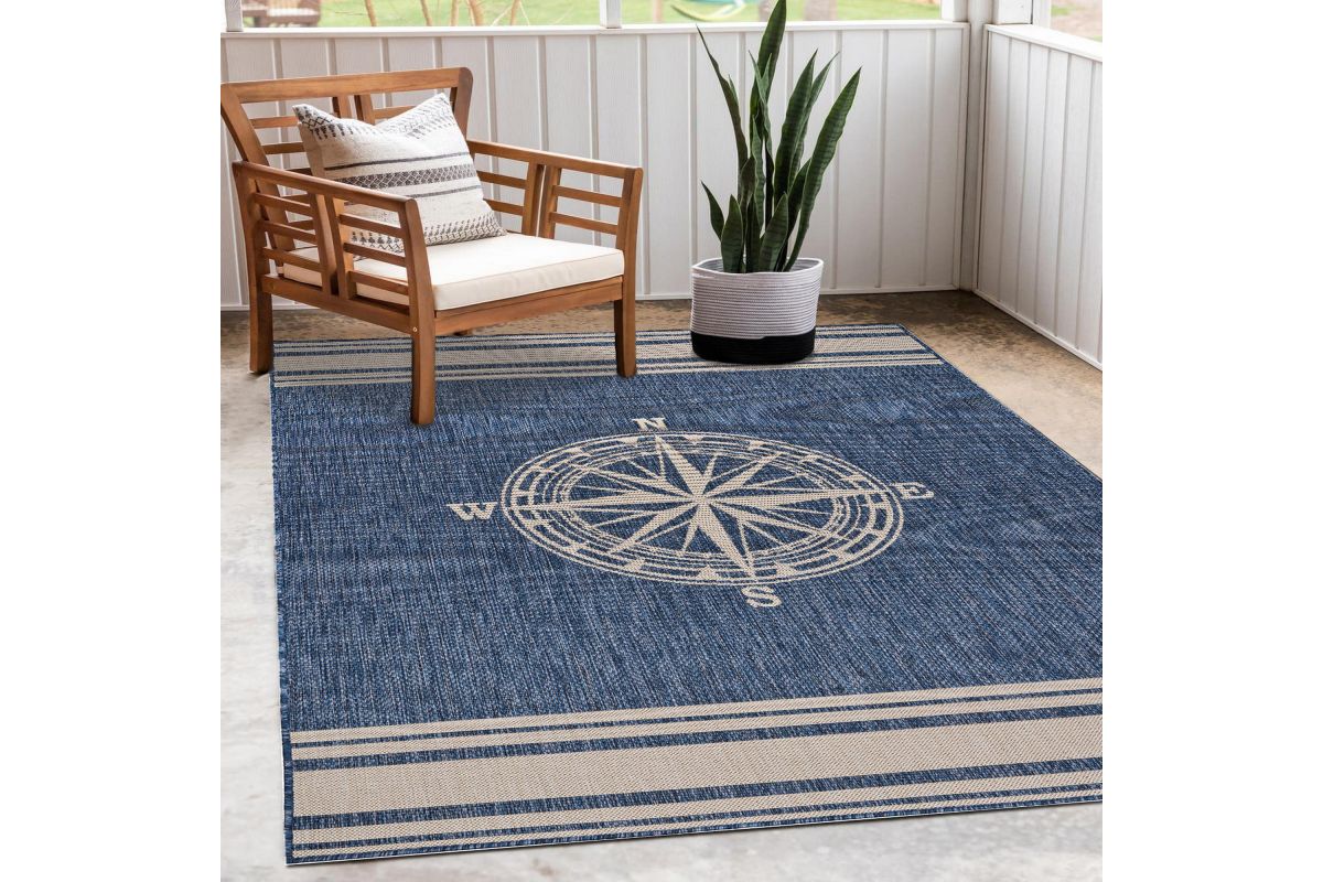 Transform your space with this durable indoor/outdoor area rug. The nautical-inspired compass pattern in navy blue and white adds coastal charm, making it a stunning foundation for beach house, tropical, or nautical interiors or exteriors. Expertly power-loomed in Turkey, this rug is crafted from a premium polypropylene blend, offering a soft yet durable texture that stands up to everyday wear and outdoor elements. Perfect for adding a refined touch to living rooms, bedrooms, or entryways, this 3' x 5' rug blends coastal charm with lasting quality. Designed for high-traffic areas, this stain, moisture, and fade-resistant, easy-to-clean rug maintains long-lasting beauty, ensuring your home stays stylish with minimal maintenance. Perfect for anyone seeking a durable, elegant, and versatile rug for your home, apartment, or dorm.