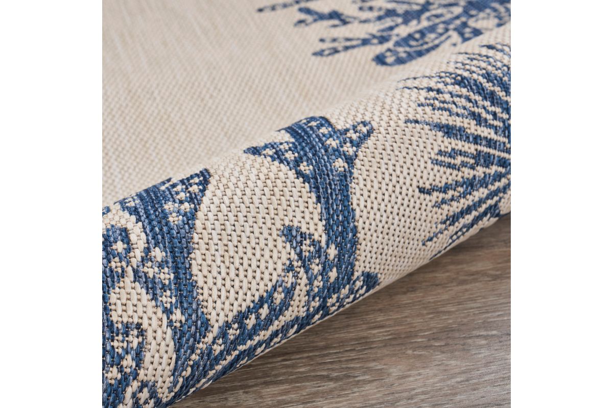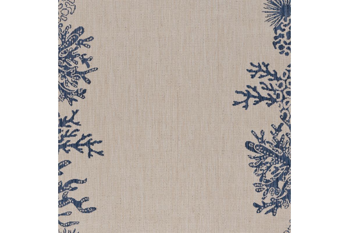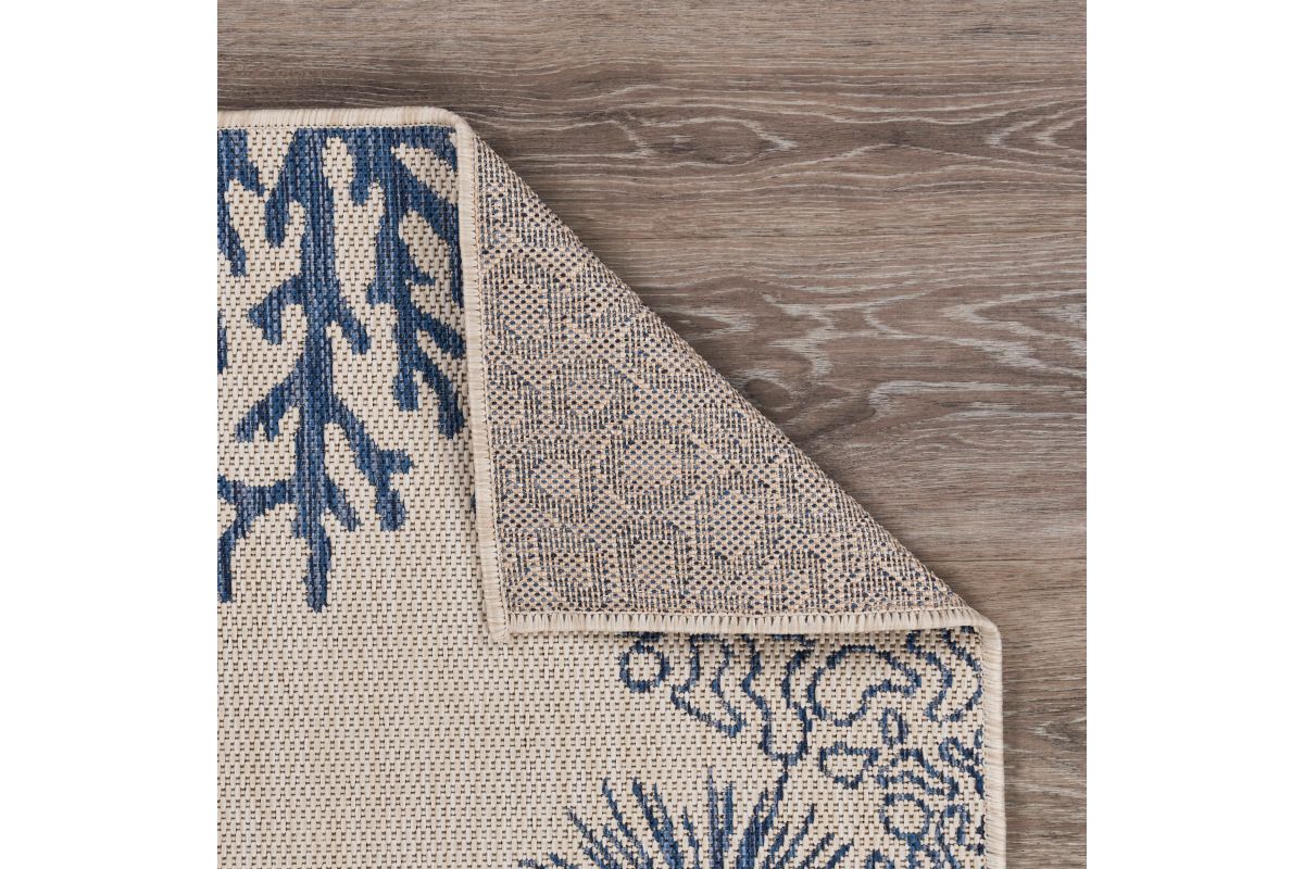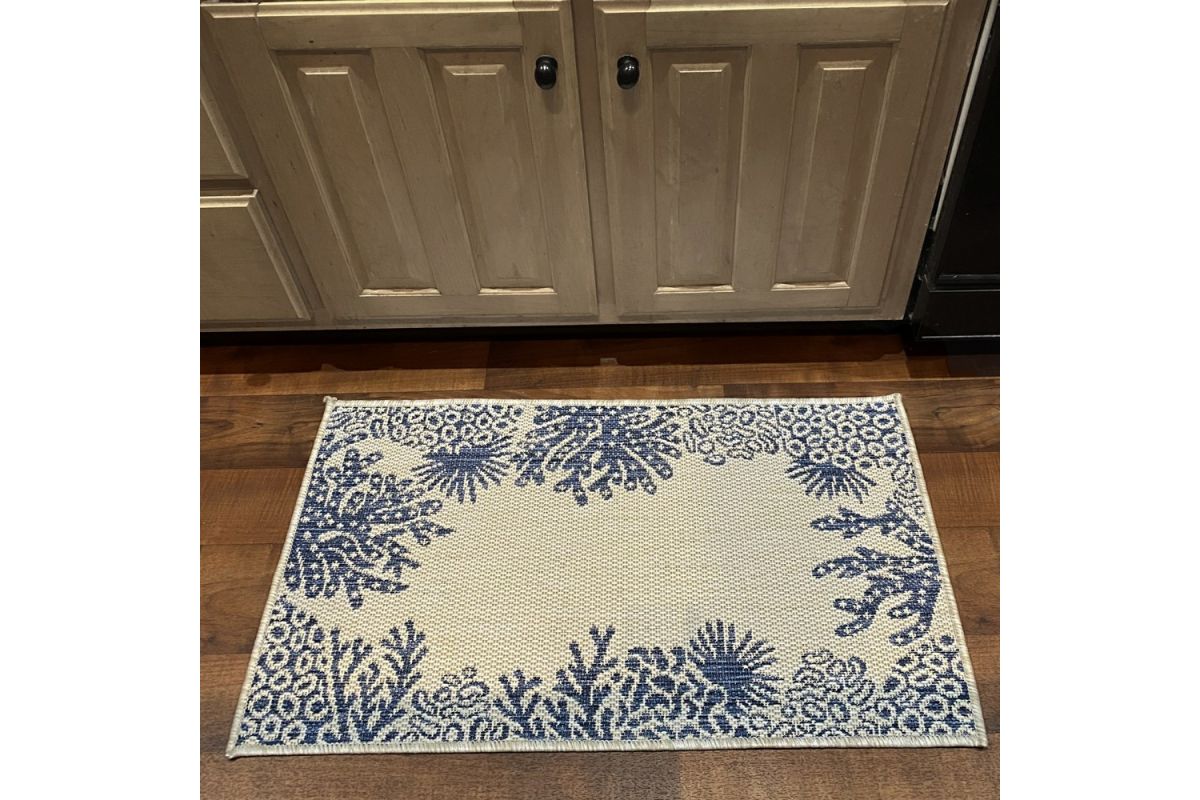 Transform your space with this durable indoor/outdoor area rug. The nautical-inspired bordered coral pattern in navy blue and beige adds coastal charm, making it a stunning foundation for beach house, tropical, or nautical interiors or exteriors. Expertly power-loomed in Turkey, this rug is crafted from a premium polypropylene blend, offering a soft yet durable texture that stands up to everyday wear and outdoor elements. Perfect for adding a colorful touch to entryways, kitchen sinks, or other compact spaces, this 1'10" x 3' rug blends coastal charm with lasting quality. Designed for high-traffic areas, this stain, moisture, and fade-resistant, easy-to-clean rug maintains long-lasting beauty, ensuring your home stays stylish with minimal maintenance. Perfect for anyone seeking a durable, elegant, and versatile rug for your home, apartment, or dorm.