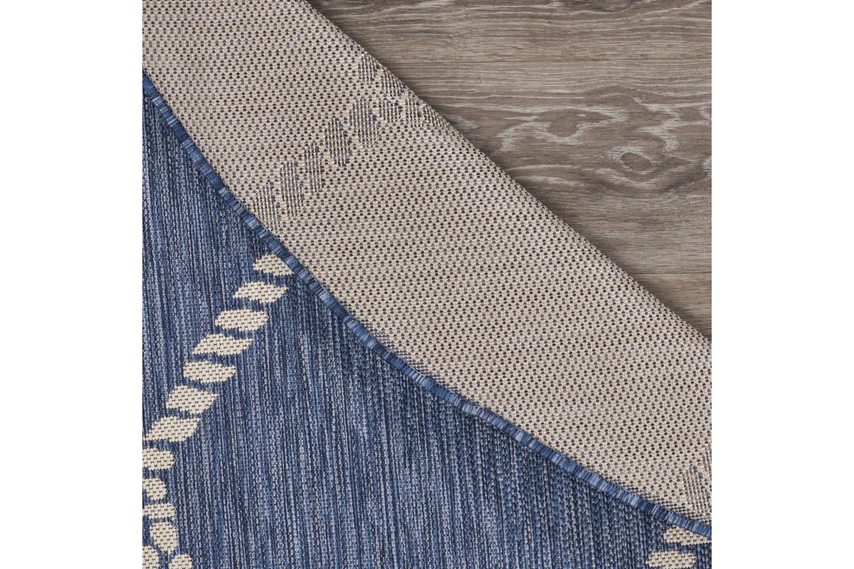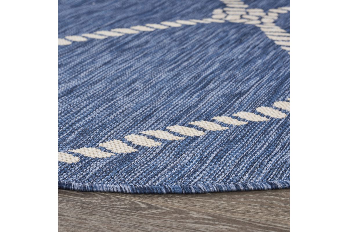 Transform your space with this durable indoor/outdoor area rug. The nautical-inspired rope lattice pattern in navy blue and white adds coastal charm, making it a stunning foundation for beach house, tropical, or nautical interiors or exteriors. Expertly power-loomed in Turkey, this rug is crafted from a premium polypropylene blend, offering a soft yet durable texture that stands up to everyday wear and outdoor elements. Perfect for adding a refined touch to living rooms, dining areas, or beneath a round dining table, this 7'6" round rug blends coastal charm with lasting quality. Designed for high-traffic areas, this stain, moisture, and fade-resistant, easy-to-clean rug maintains long-lasting beauty, ensuring your home stays stylish with minimal maintenance. Perfect for anyone seeking a durable, elegant, and versatile rug for your home, apartment, or dorm.