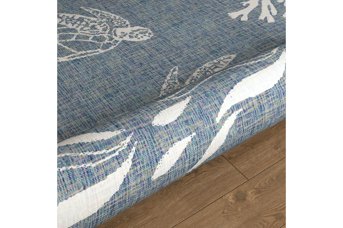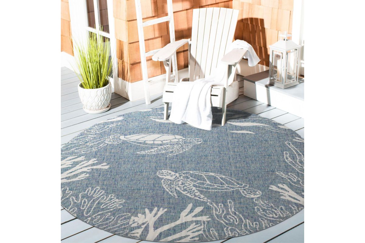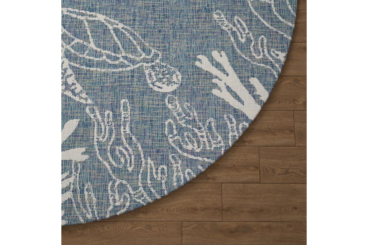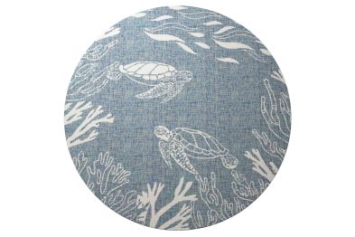 Transform your space with this durable indoor/outdoor area rug. The nautical-inspired sea turtle and coral scene in aqua blue and beige adds coastal charm, making it a stunning foundation for beach house, tropical, or nautical interiors or exteriors. Expertly power-loomed in Turkey, this rug is crafted from a premium polypropylene blend, offering a soft yet durable texture that stands up to everyday wear and outdoor elements. Perfect for adding a refined touch to living rooms, bedrooms, or a cozy reading nook, this 5'3" round rug blends coastal charm with lasting quality. Designed for high-traffic areas, this stain, moisture, and fade-resistant, easy-to-clean rug maintains long-lasting beauty, ensuring your home stays stylish with minimal maintenance. Perfect for anyone seeking a durable, elegant, and versatile rug for your home, apartment, or dorm.
