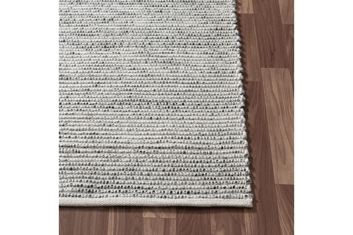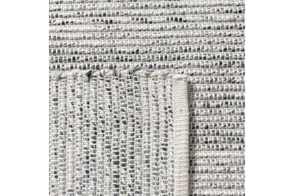 Elevate your outdoor space with this rustic hand-woven area rug in silver and ivory. Featuring a distressed striped pattern in cool gray and ivory tones, this weather-resistant rug adds a cozy, modern touch to patios, decks, porches, or indoor living spaces. Hand-woven in India from 100% polyester, it offers a soft yet durable surface that withstands foot traffic and the elements. A clear non-skid latex backing helps prevent slipping, while its spot-cleanable design ensures easy maintenance. Perfect for transitional and contemporary décor.