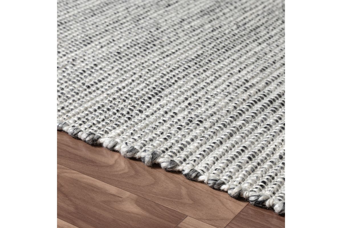 Elevate your outdoor space with this rustic hand-woven area rug in silver and ivory. Featuring a distressed striped pattern in cool gray and ivory tones, this weather-resistant rug adds a cozy, modern touch to patios, decks, porches, or indoor living spaces. Hand-woven in India from 100% polyester, it offers a soft yet durable surface that withstands foot traffic and the elements. A clear non-skid latex backing helps prevent slipping, while its spot-cleanable design ensures easy maintenance. Perfect for transitional and contemporary décor.