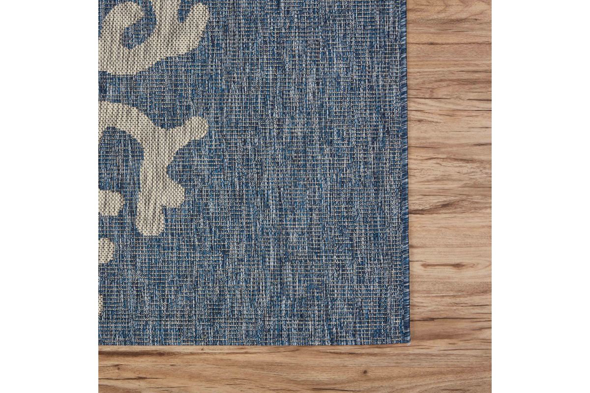 Bring the beachy vibes home with our coastal-inspired indoor/outdoor area rug. Powerloomed in Turkey with 100% weather- and stain-resistant Polypropylene, this rug is both durable and beautiful. Perfect for your patio, deck, and lanai, but can also be used in a kitchen, living room, or dining space, it's a great way to add a touch of tropical charm to any room.