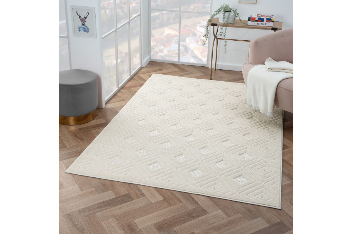 Jazz up your living space with this versatile indoor/outdoor performance area rug. Expertly powerloomed in Turkey, this rug is crafted from 100% polypropylene, making it durable and stain resistant. The neutral color palette complements any decor style, while the intricately detailed geometric diamond design adds a subtle touch of sophistication. Perfect for high-traffic areas, this rug is ideal for adding comfort and style to your patio, porch, or living room.