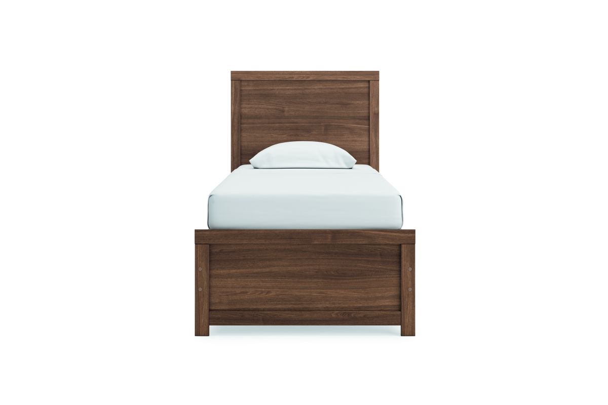 With its rich, warm auburn finish over replicated wood grain, this casually cozy queen panel bed evokes the tranquil vibe you long for in your dream destination. Its invitingly comfy aesthetic is ready to welcome you home. Sweet dreams.