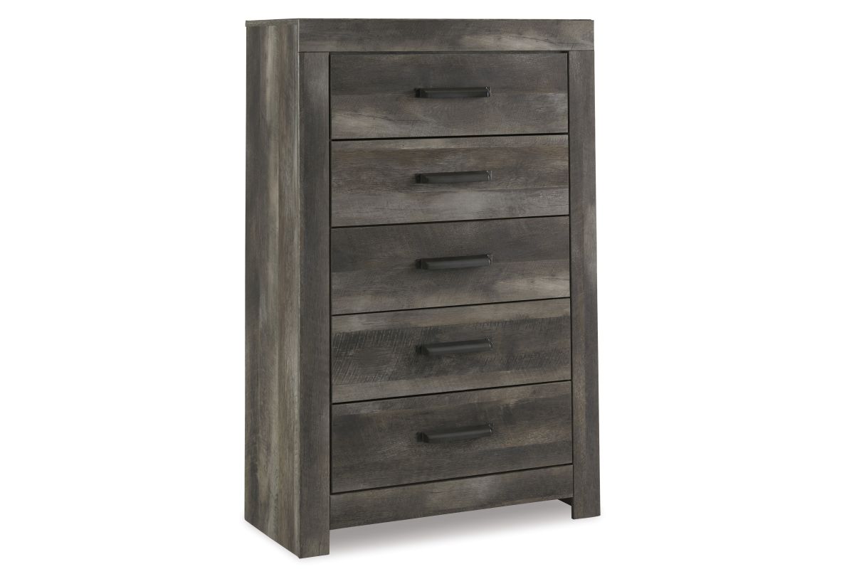 The Crossgate chest of drawers is sure to win your heart with its daring designer take on modern rustic. The bedroom chest’s crisp, clean and minimalist-chic profile is enriched with a striking replicated oak grain with thick plank styling and a weathered gray finish for that much more authentic character. Large-scale hooded pulls gracing the flush-mount drawers add such a distinctive twist.