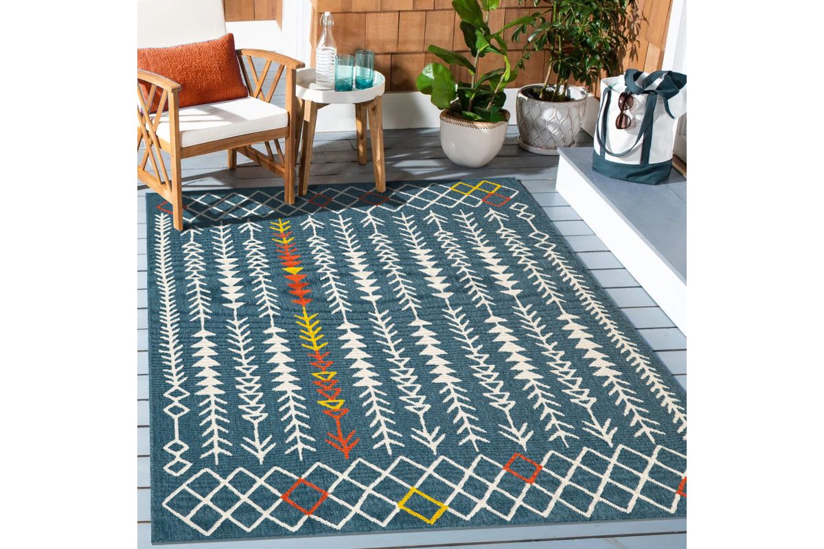 Machine-made with durable polypropylene, it ensures longevity in any environment. Adorned with a tribal design, it seamlessly blends Southwestern, bohemian, and eclectic aesthetics, adding character to any space. Engineered for convenience, its machine-made construction promises hassle-free maintenance, retaining its allure for years. Elevate your decor with this made in Egypt rug, symbolizing both quality craftsmanship and contemporary elegance. Redefine your space with the area rug, where style meets durability, creating an ambiance of cultural richness and comfort. Ideal for indoor or outdoor use, this rug enhances any living space with its unique charm and versatility.