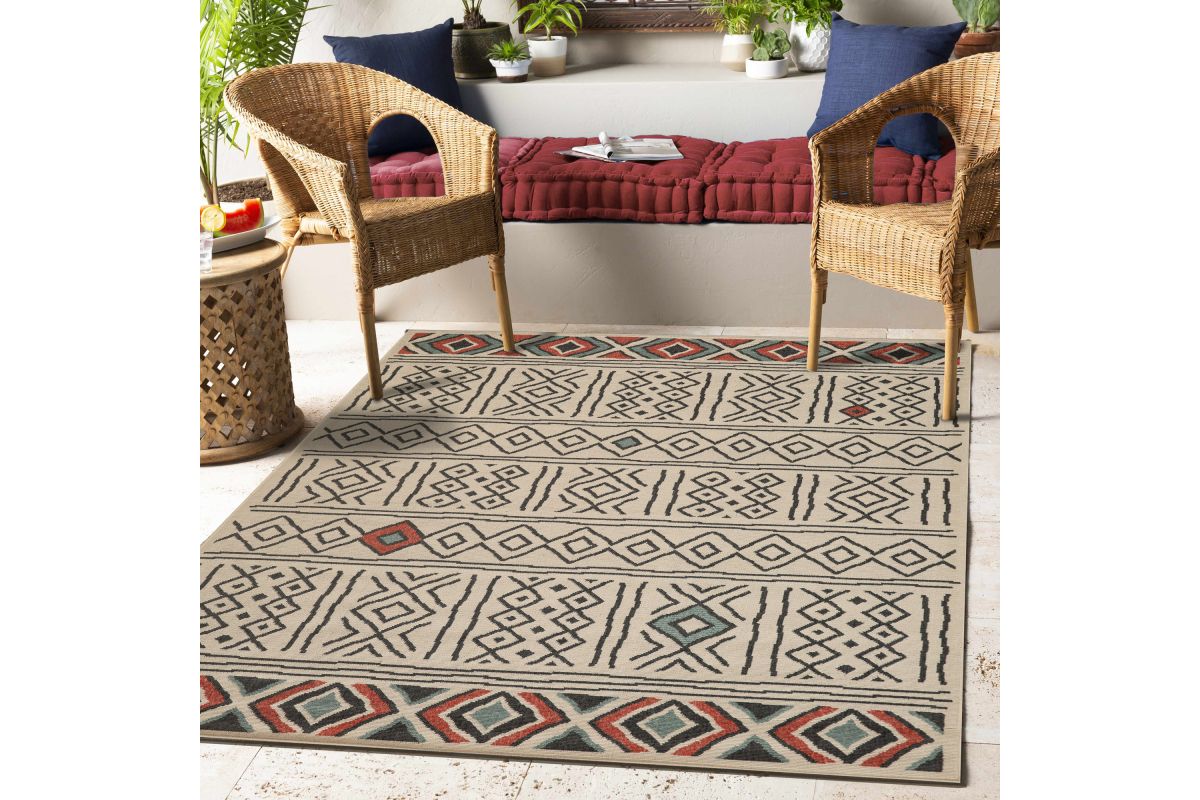 Machine-made with resilient polypropylene, it ensures longevity indoors and out. Adorned with tribal-inspired diamond patterns, it seamlessly merges southwestern, bohemian, and eclectic aesthetics, adding character to any space. Engineered for convenience, its machine-made construction promises hassle-free maintenance, preserving its allure for years. Elevate your decor with this made in Egypt rug, symbolizing quality craftsmanship and contemporary elegance. Redefine your space with the area rug, where style meets durability, creating an ambiance of cultural richness and comfort. Whether gracing your living room or patio, this rug enhances any environment with its unique charm and versatility. Ideal for those seeking a blend of tradition and modernity in their home decor.