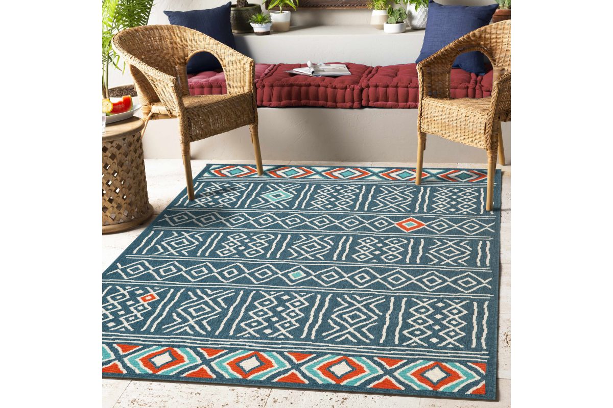 Indoor/Outdoor area rug meticulously crafted in Egypt. Machine-made with durable polypropylene, it ensures longevity indoors or out. Adorned with captivating tribal motifs, it effortlessly blends southwestern, bohemian, and eclectic styles, infusing character into any space. Engineered for convenience, its machine-made construction promises hassle-free maintenance, preserving its allure for years to come. Elevate your decor with this made in egypt rug, symbolizing quality craftsmanship and contemporary elegance. Redefine your space with the area rug, where style meets durability, creating an ambiance of cultural richness and comfort. Whether gracing your living room or outdoor patio, this versatile rug adds a touch of personality and charm to any environment. Ideal for those seeking to make a statement with their home decor.