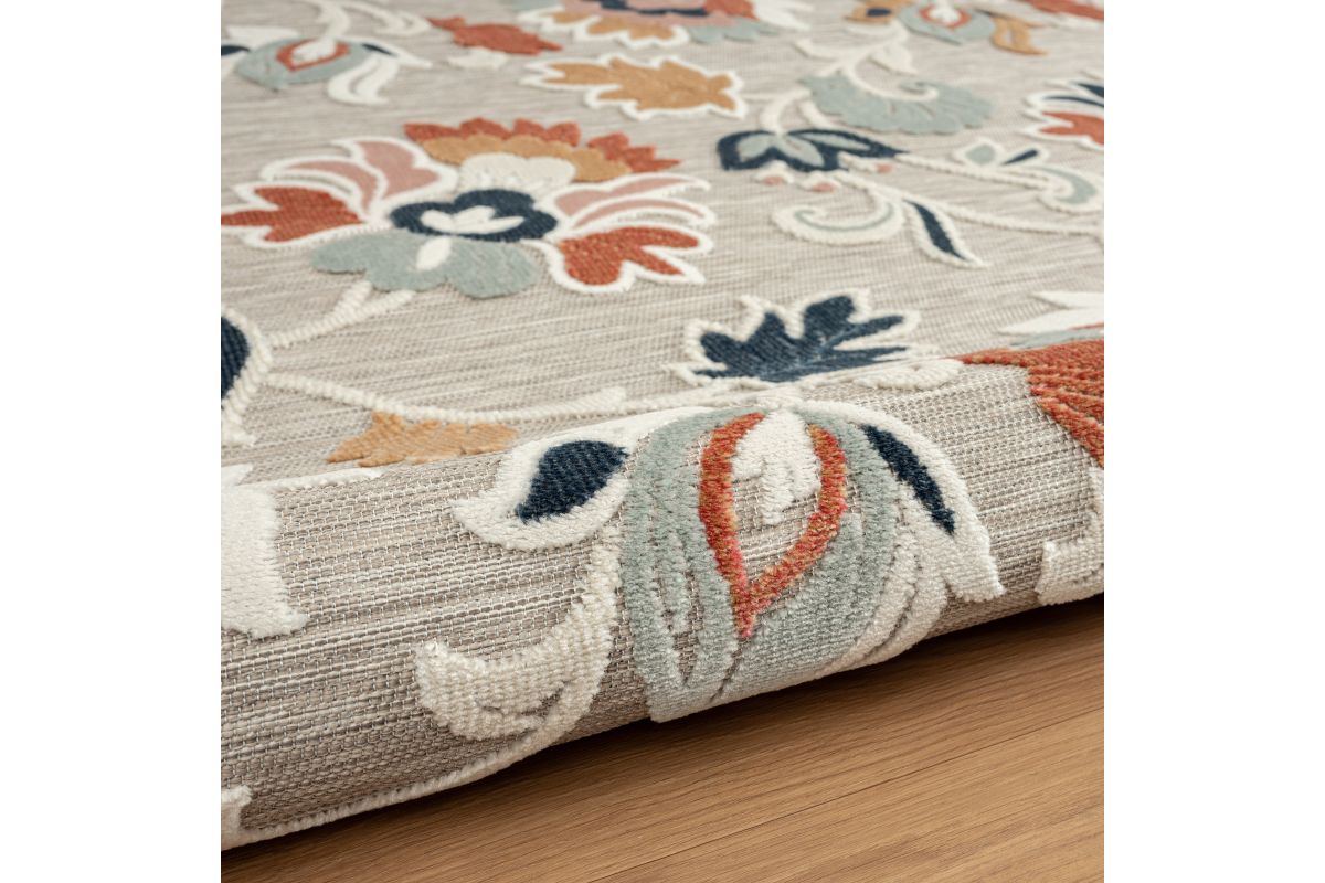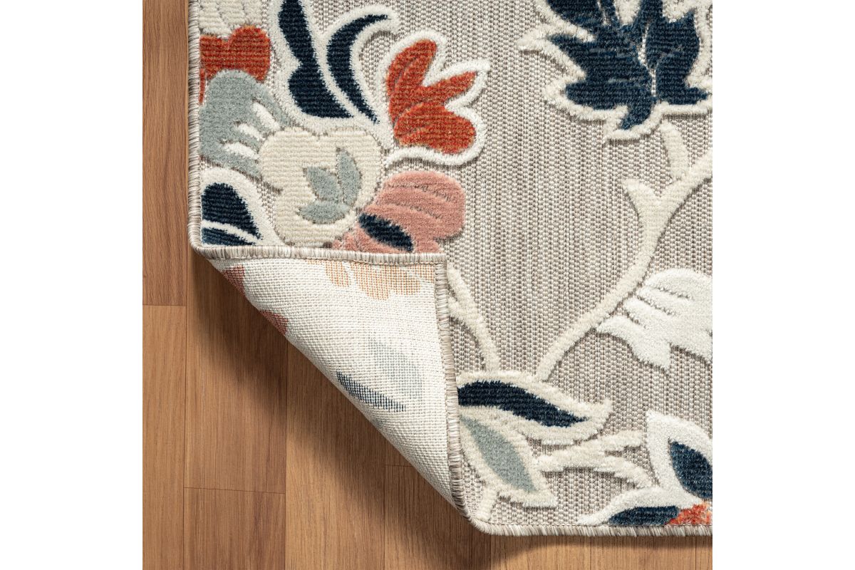 Bring both style and durability to your indoor and outdoor spaces with this beautiful area rug. Expertly powerloomed in Turkey using 100% polypropylene, this rug features a soft color palette that will complement any decor. Its stain-resistant properties make it ideal for high-traffic areas, while its versatility allows it to be used in a variety of spaces including living rooms, bedrooms, patios, porches, or lanais. Enjoy the comfort and practicality of this rug wherever you need it most.