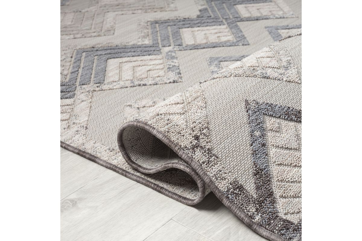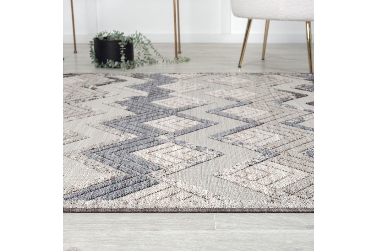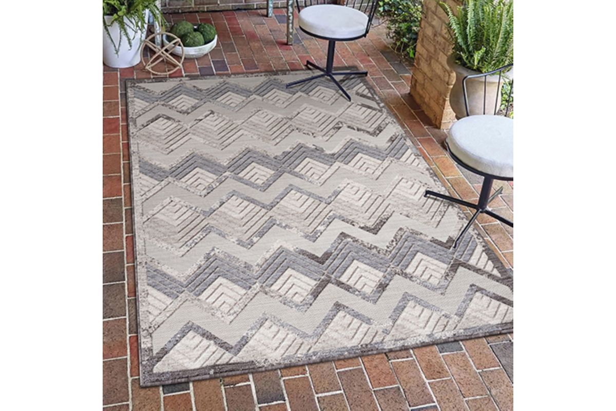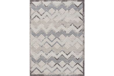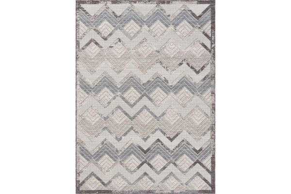 Accent your living room, dining room, porch, deck, or patio, with this indoor/outdoor area rug. Meticulously crafted from dozens of recycled plastic bottles, this rug is surprisingly soft while proudly being environmentally friendly. Featuring a contemporary high-low chevron pattern in ivory and blue neutral colors, it will add dimension to any of your rooms while effortlessly blending in with the rest of your decor. Bring this piece of floor art home and see it add life to your space in an instant.