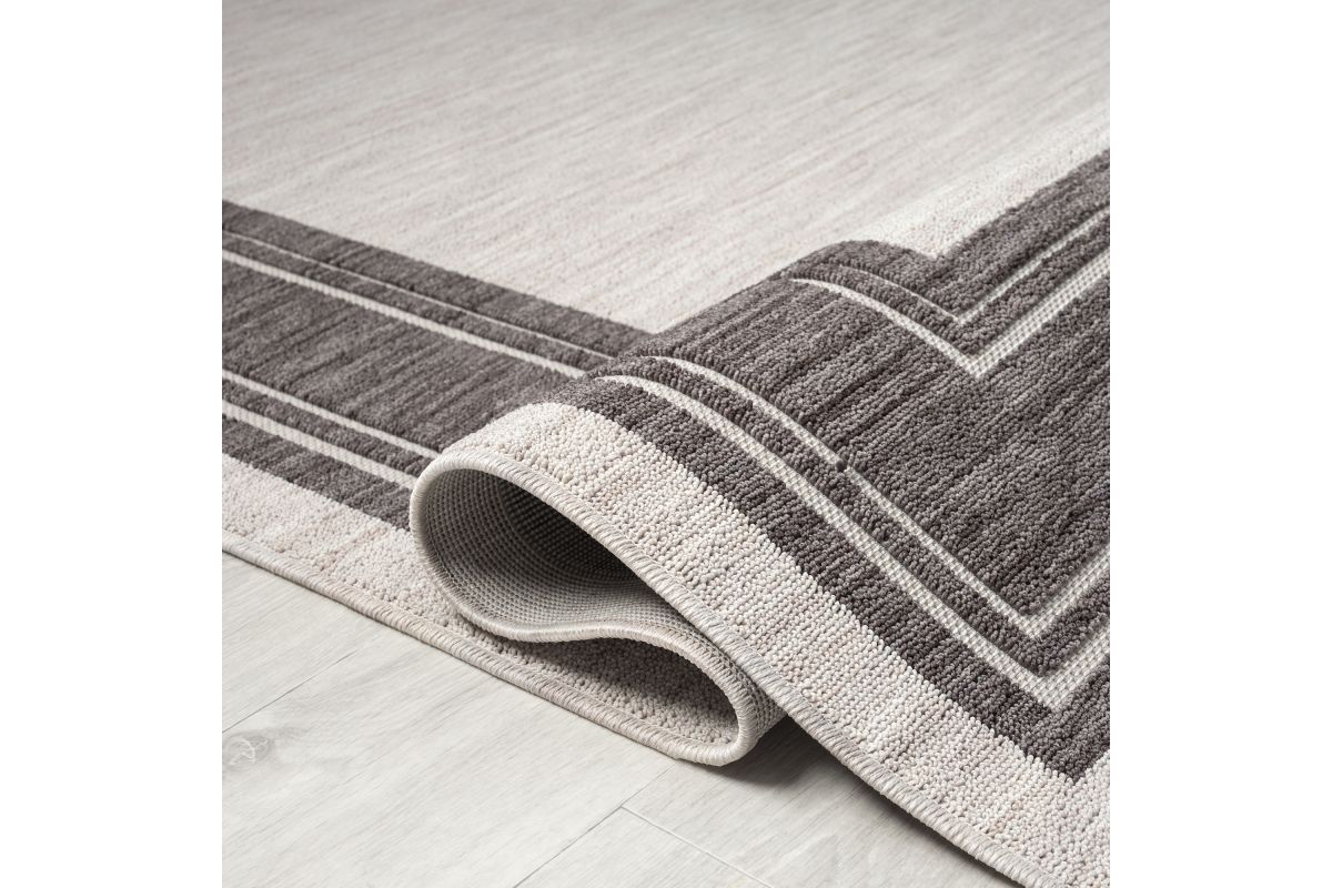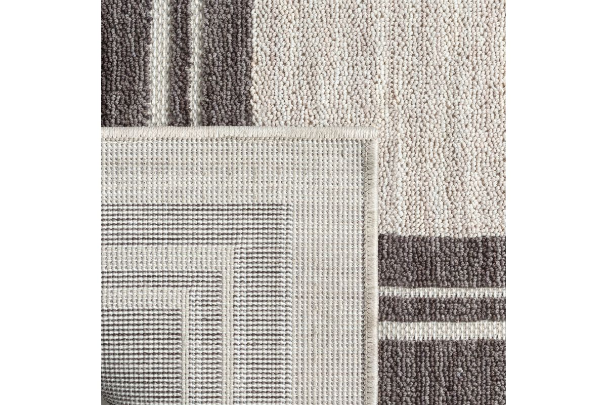 Accent your living room, dining room, porch, deck, or patio, with this indoor/outdoor area rug. Meticulously crafted from dozens of recycled plastic bottles, this rug is surprisingly soft while proudly being environmentally friendly. Featuring a contemporary high-low border stripes pattern in ivory & black colors, it will add dimension to any of your rooms while effortlessly blending in with the rest of your decor. Bring this piece of floor art home and see it add life to your space in an instant.