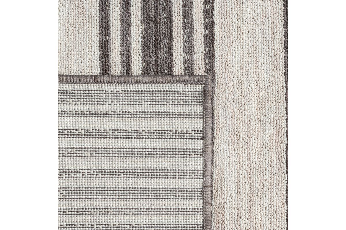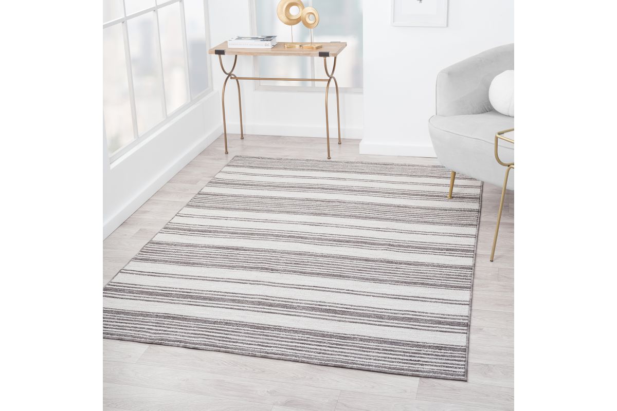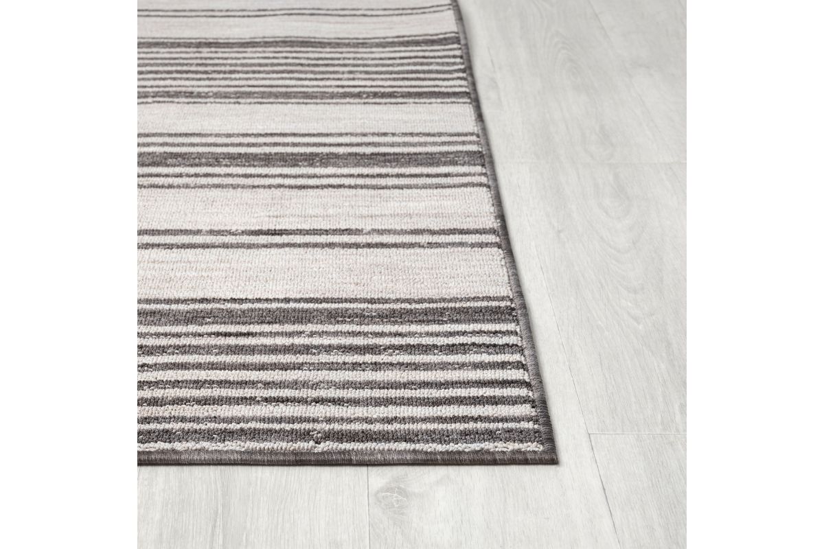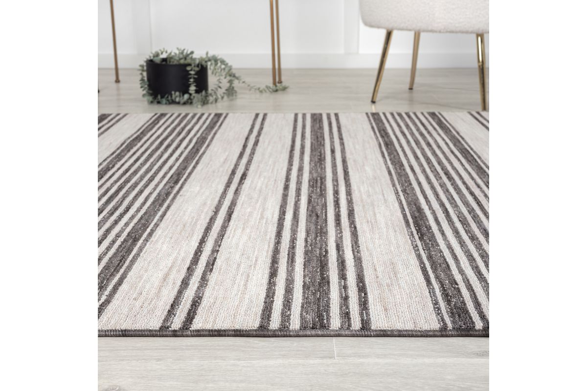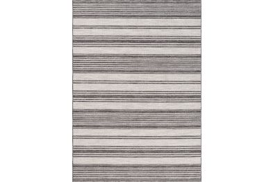 Accent your living room, dining room, porch, deck, or patio, with this indoor/outdoor area rug. Meticulously crafted from dozens of recycled plastic bottles, this rug is surprisingly soft while proudly being environmentally friendly. Featuring a contemporary high-low striped pattern in ivory & anthracite black neutral colors, it will add dimension to any of your rooms while effortlessly blending in with the rest of your decor. Bring this piece of floor art home and see it add life to your space in an instant.