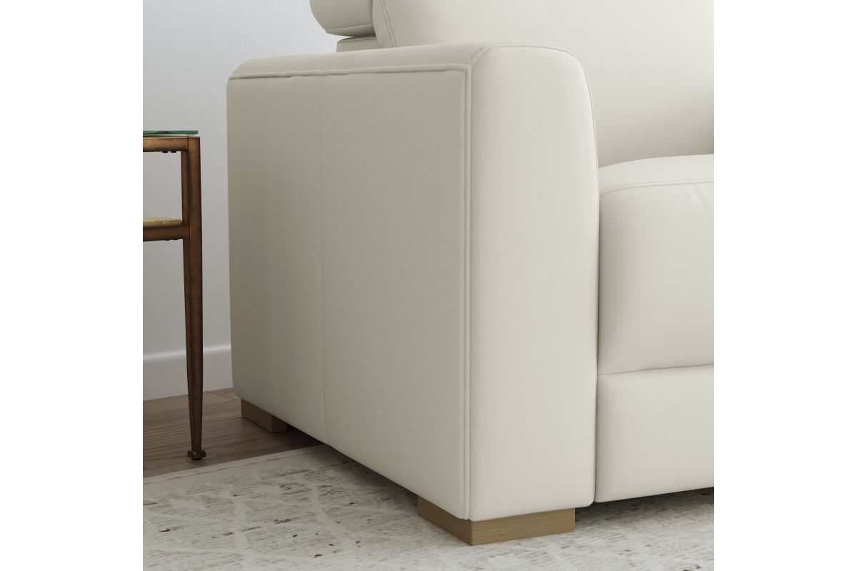 - Upholstered in a durable, coconut milk white top-grain leather that is durable for everyday use