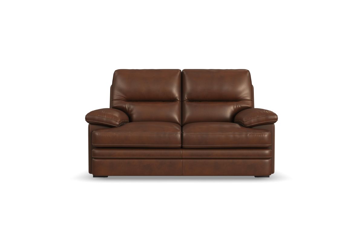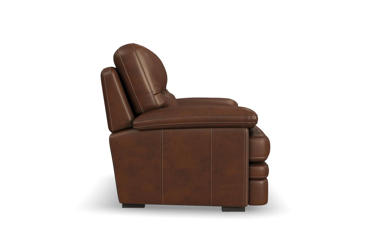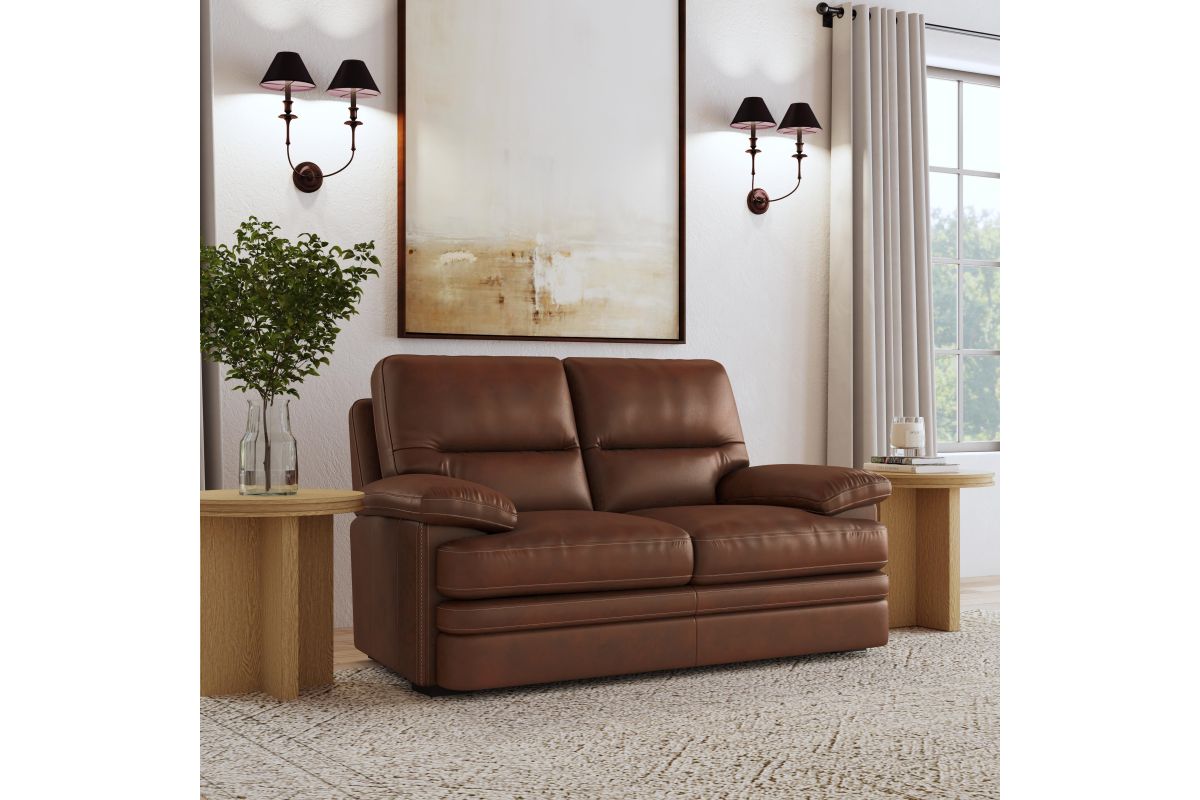 Experience ultimate comfort and unrivaled value with the David loveseat. Undeniably plush, sink into the wide seat cushions, divided back and lofty pillow-padded arms. The grand scale and sophisticated silhouette features a unique layered front rail and striking stitch details. Upholstered in a buttery-soft, protected top-grain leather, this loveseat is designed for everyday enjoyment and active lifestyles.