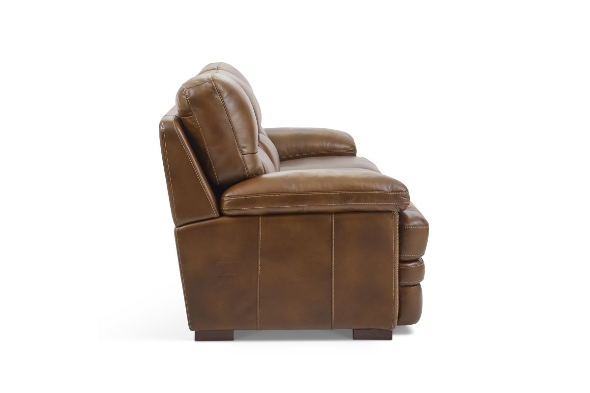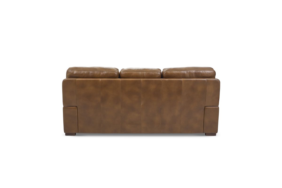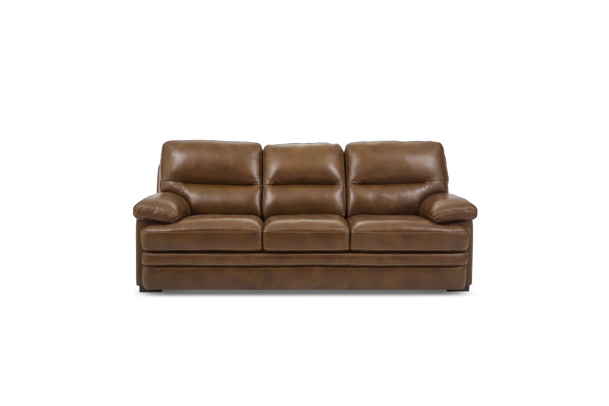 Experience ultimate comfort and unrivaled value with the David sofa. Undeniably plush, sink into the wide seat cushions, divided back and lofty pillow-padded arms. The grand scale and sophisticated silhouette features a unique layered front rail and striking stitch details. Upholstered in a buttery-soft, protected top-grain leather, this sofa is designed for everyday enjoyment and active lifestyles.