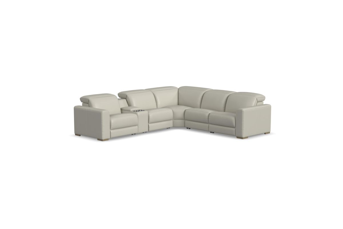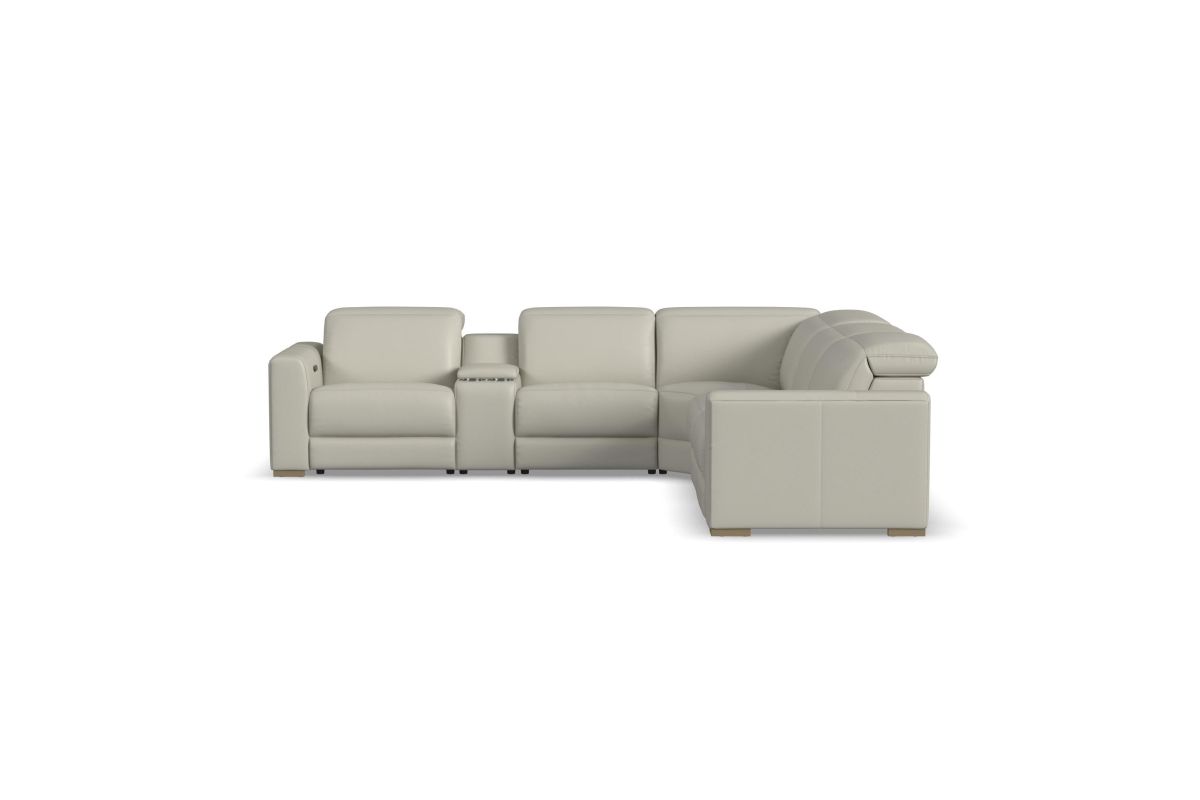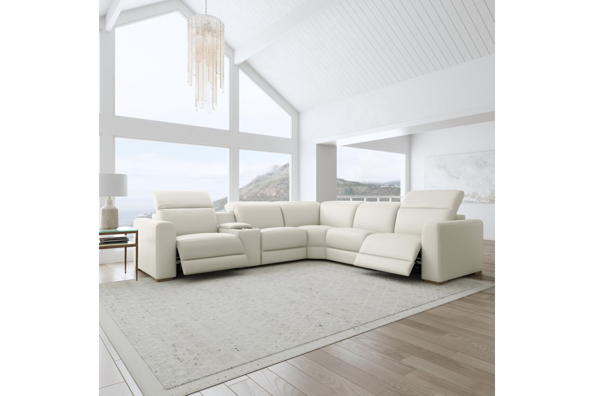 The luxurious look of upscale stationary furniture combineswith functional adjustability with the Aurora power reclining sectional with power headrests. Transform your living space into a stylish oasis for relaxation and surround yourself in contemporary comfort with design features such as soft, wide track arms and a low profile, stationary look with motion functionality. The power recline and headrests help you achieve maximum relaxation, while Zero Gravity technology gives you a feeling of weightlessness. Useful features such as charging ports and a storage console offer added convenience of keeping mobile devices powered and drinks close at hand. Upholstered in two neutral color choices of durable top-grain leather, the Aurora power reclining sectional serves as a beautiful complement to any home.