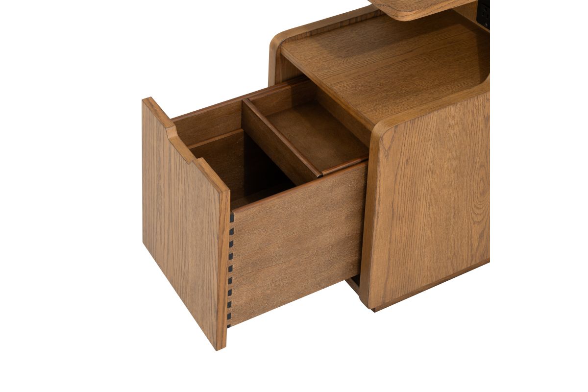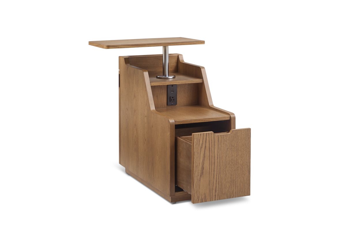 Whether you’re unwinding with a book, charging your devices, or enjoying a late-night cup of tea, Sidekick is right by your side. This smart side table is the ultimate bedside companion designed to keep up with your modern lifestyle. Crafted with rich wood grain and a warm finish, this elegant yet functional side table is more than just furniture, it’s a loyal partner in your daily routine. Its smooth, elevated pop-up swivel table offers the perfect perch for your essentials, while the built-in power outlet keeps your devices within reach and ready for action. The spacious storage compartment below tucks away clutter, ensuring your space remains serene and stylish. With its timeless charm and smart design, Sidekick isn’t just a table, it’s a promise of effortless comfort and convenience.