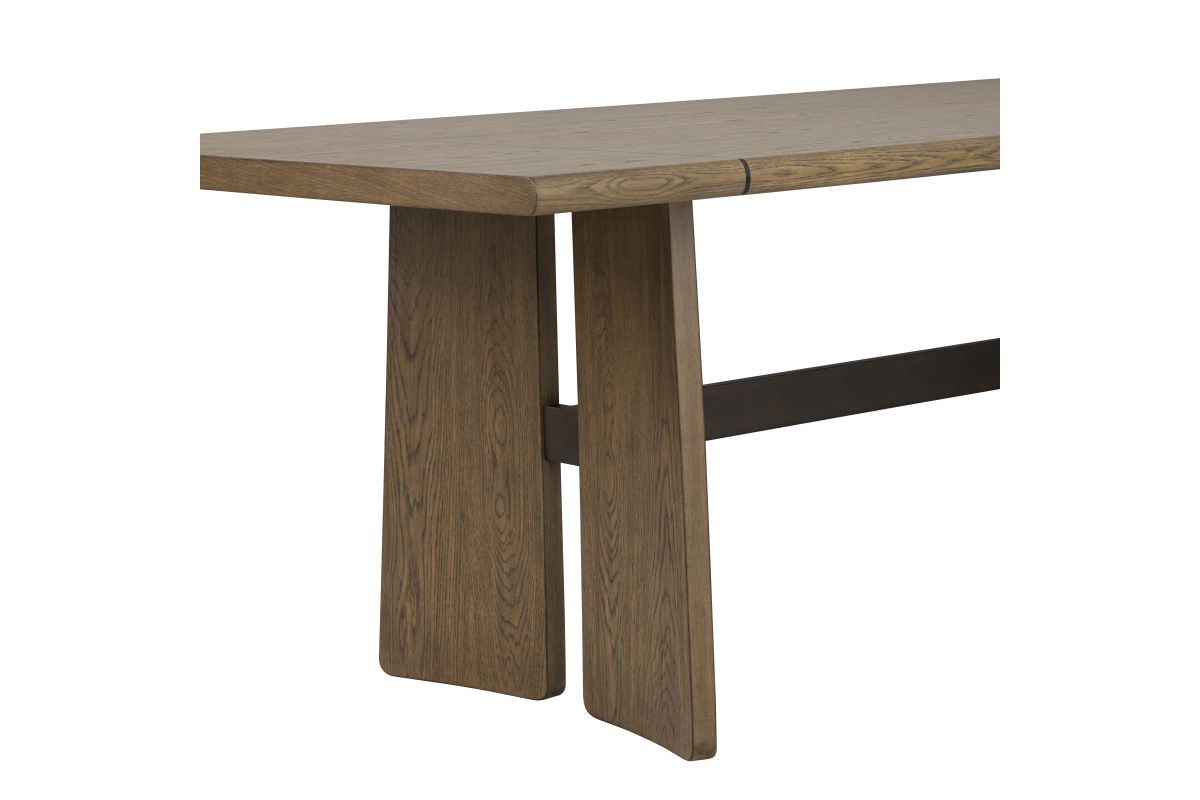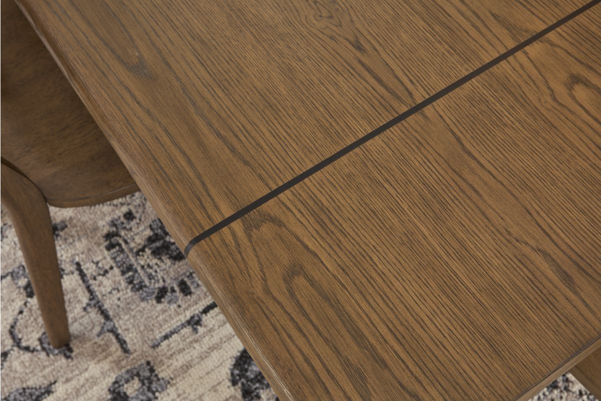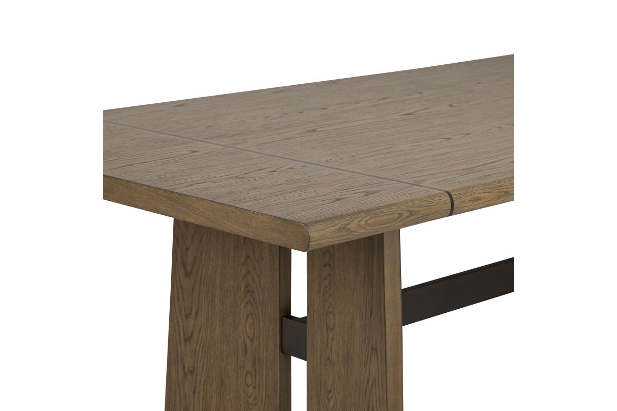 - Constructed of rubberwood solids and white oak veneers in a warm, Sierra Brown finish with a center metal inlay