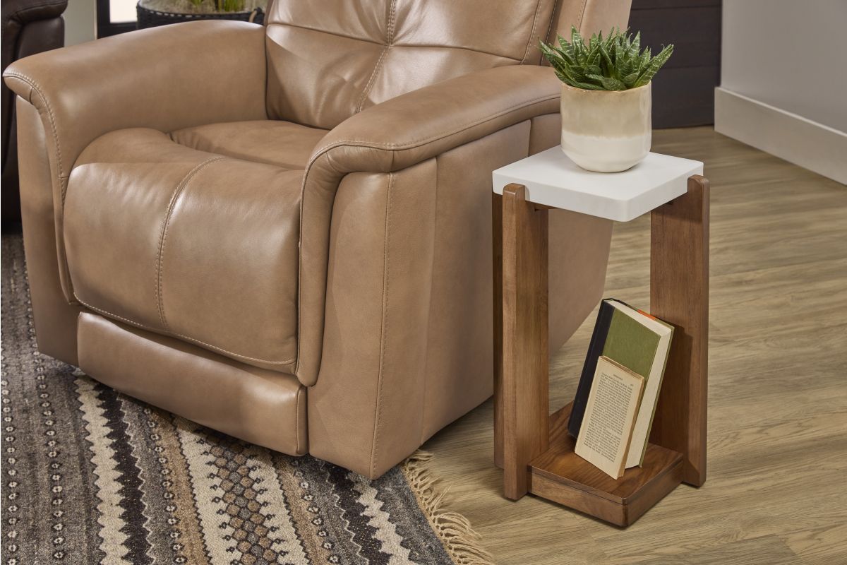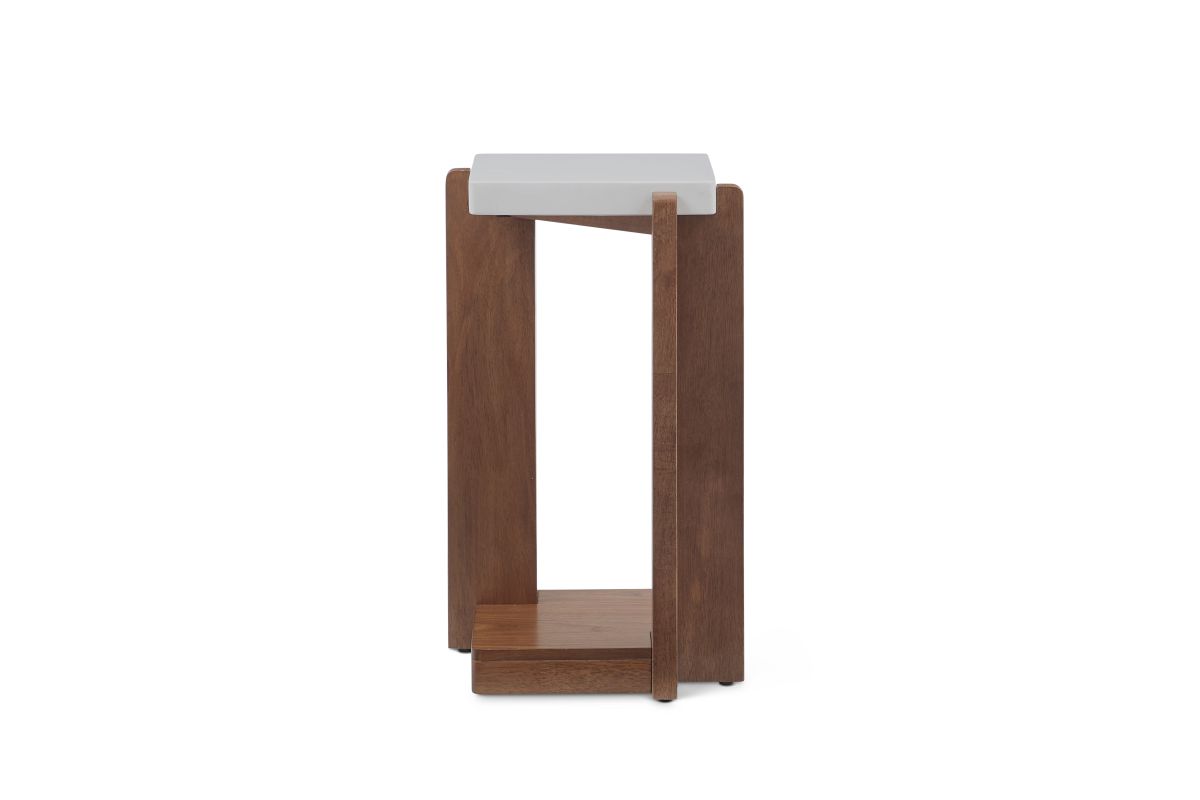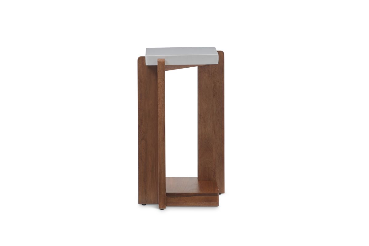 Bring timeless inspiration to your living room. Our Lincoln accent table was crafted with the works of influential architect Frank Lloyd Wright in mind, to bring timeless style to the present. A clean stone like top perched atop a show-stopping trestle base in a rich walnut finish, this accent table is heirloom quality built for the everyday. Designed for elegance and utility, the Lincoln has an open compartment that can be used for storage. The durability you need, with artisan details you want. It's all possible with Lincoln.