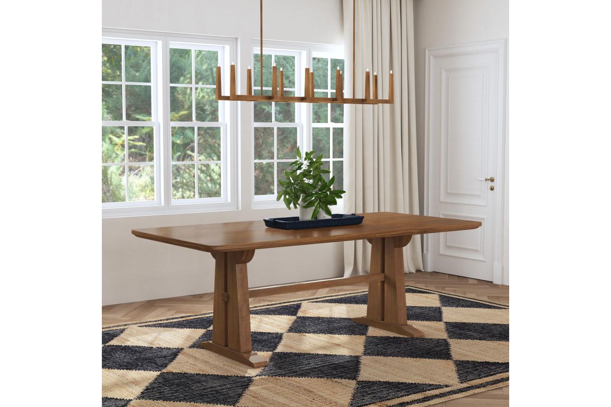 Bring some iconic gravitas to your dining room. Our Lincoln dining table takes inspiration from influential architect Frank Lloyd Wright, to bring timeless style to the present. Your dinner party's new showstopper, the Lincoln is perched atop a trestle Parson base crafted with the finest architecture in mind. Able to accommodate up to eight guests, the Lincoln provides ample space for any event. Bring museum quality home to your dining room, with Lincoln.