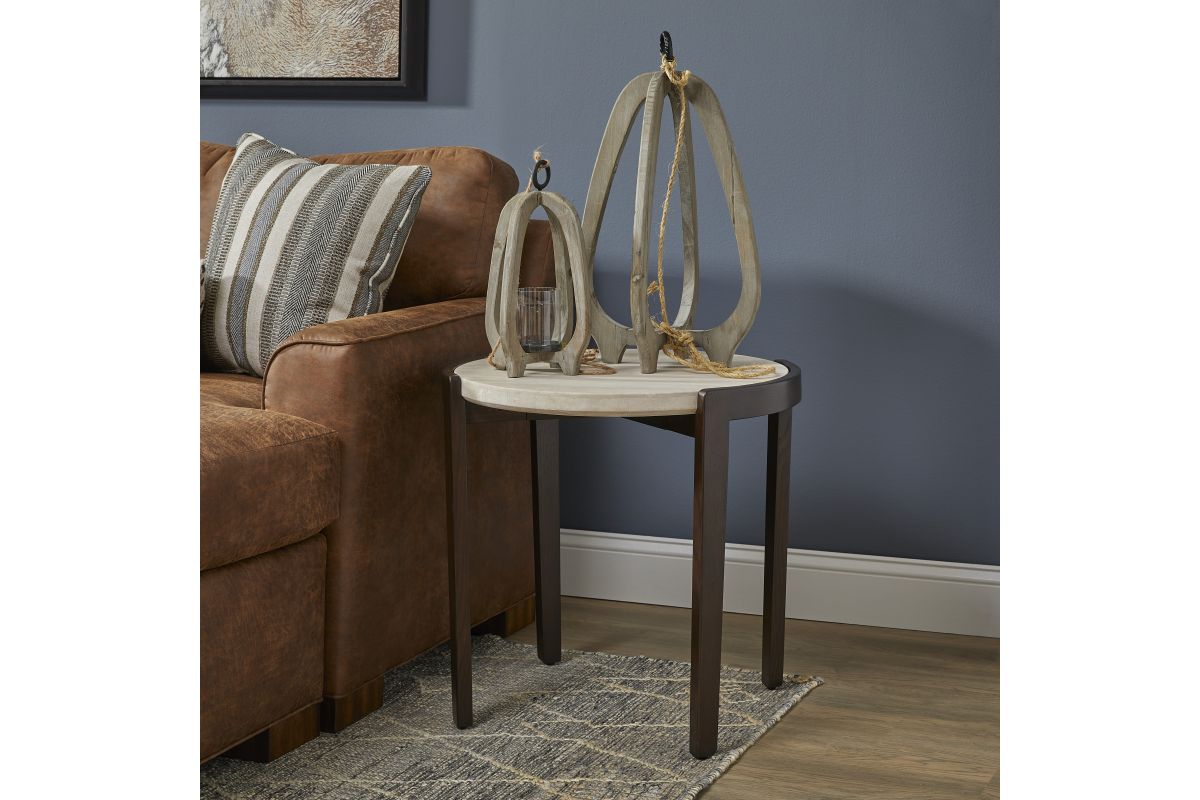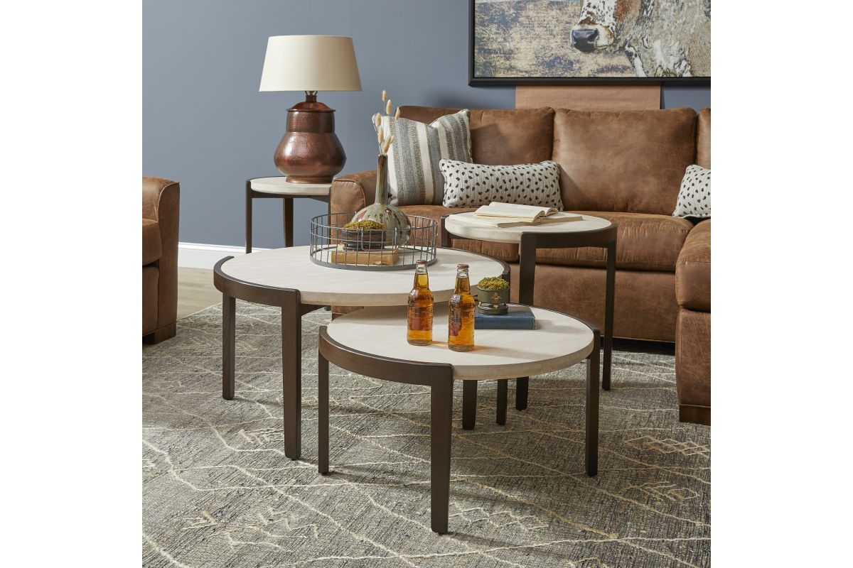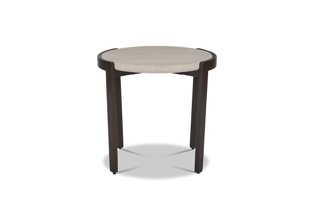 Elevate the look of your living space with the Palette tall bunching table, an alluring blend of European design and nature-inspired beauty. A light travertine stone top rests upon a contrasting, curved wood base, evoking the illusion of a floating surface. Part of a table collection with three distinct heights and sizes, the Palette tall bunching table can be paired with other versions to create a layered, visually captivating look that expands surface space without crowding a room.