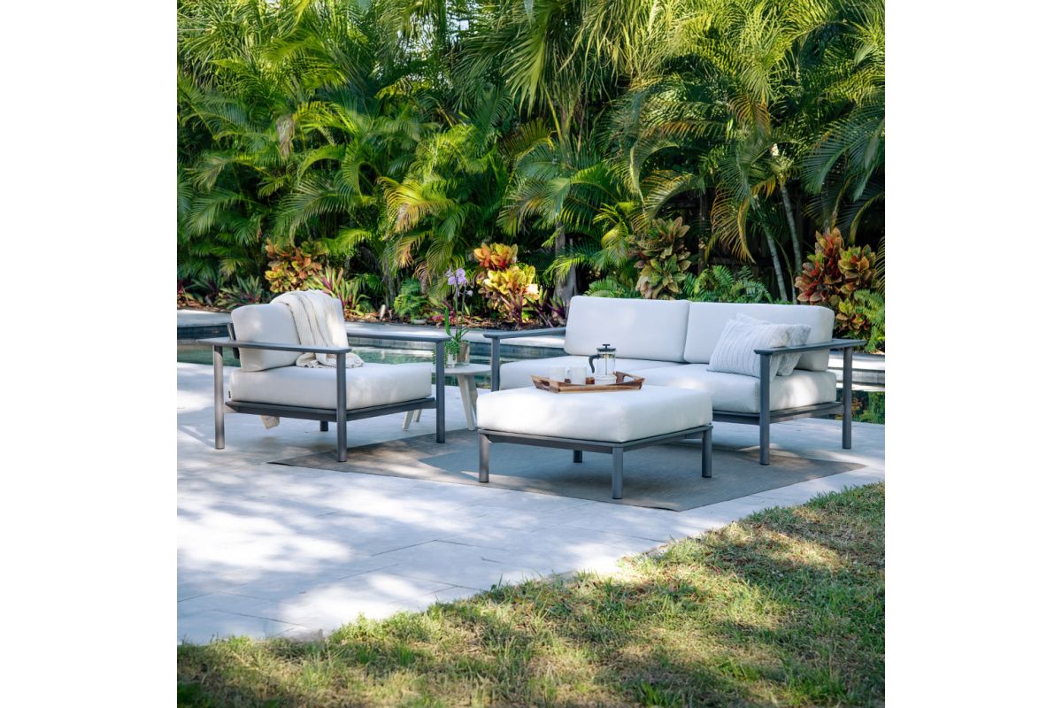 Our Aurora Sofa may not guarantee you a light show, but it will always be the right place to enjoy the outdoors. It’s durable stainless-steel frame with a rust-proof powder coat creates a solid foundation for this airy collection. Featuring a taller seat height, the Aurora Sofa allows you to sit and stand with ease. You won’t want to leave these plush cushions anytime soon though!