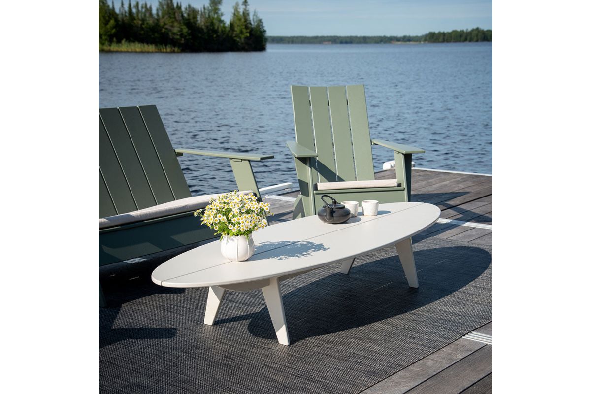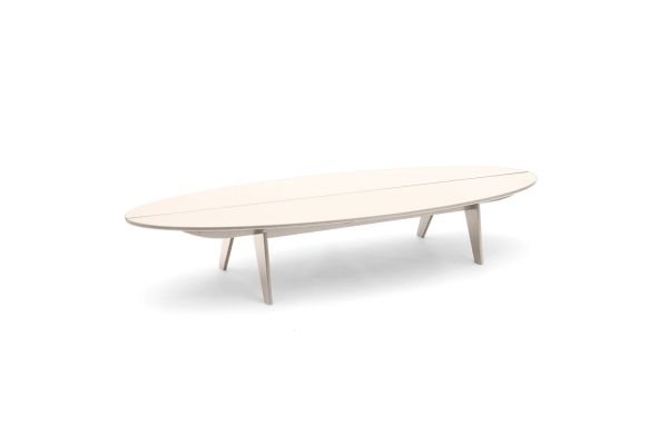 The modern Bolinas Surfboard Coffee Table makes it easy to carve out time for outdoor entertaining, lounging or lazing. This outdoor surfboard coffee table is made from recycled plastic, which means it's easy to clean and requires no maintenance. In fact, it doesn't even need wax. Measures 6 feet in length.
