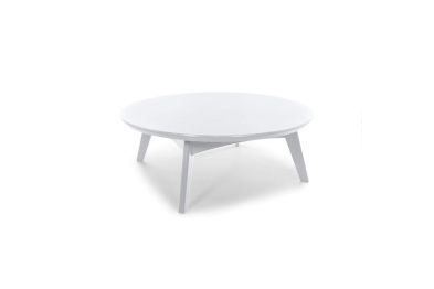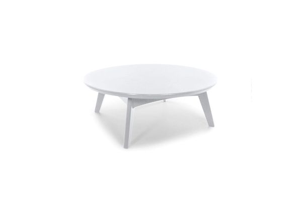 This round outdoor cocktail table is part of Loll Designs' modern Satellite Collection. Made from heavy, 1-inch-thick recycled plastic, it is available in several environmentally conscious colors.