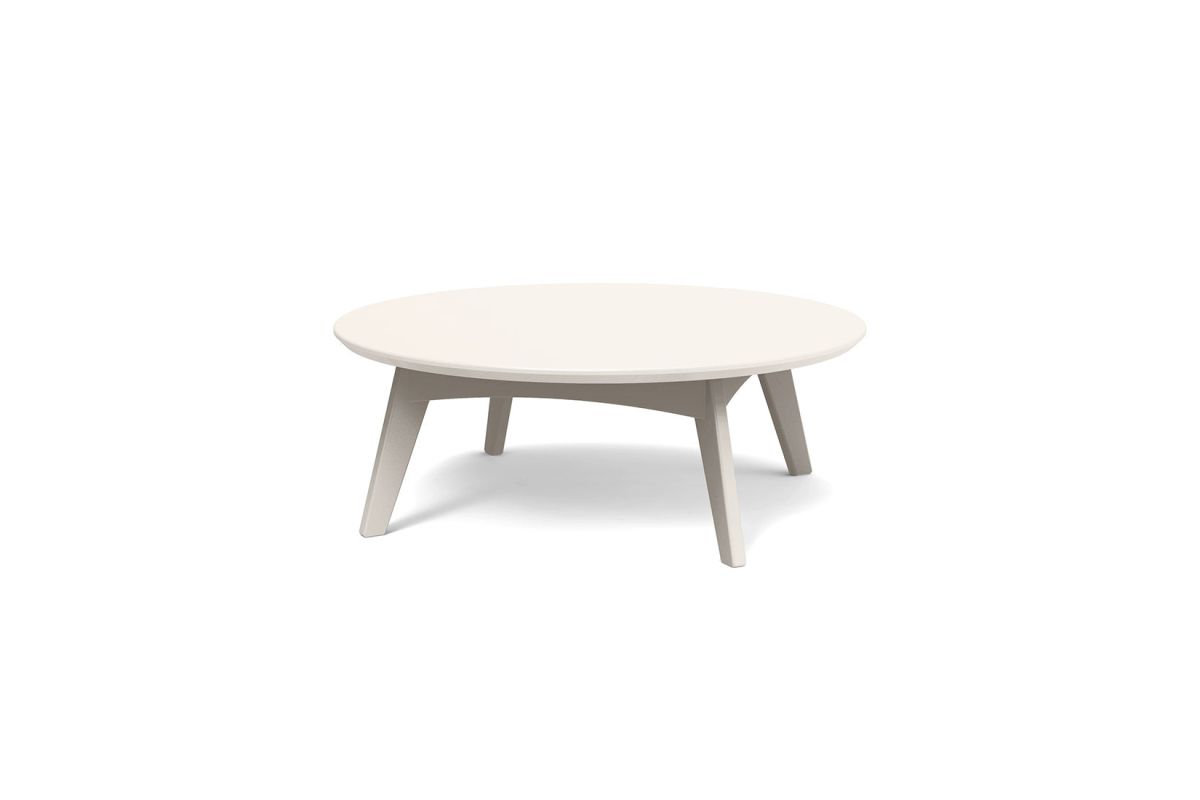 This round outdoor cocktail table is part of Loll Designs' modern Satellite Collection. Made from heavy, 1-inch-thick recycled plastic, it is available in several environmentally conscious colors.