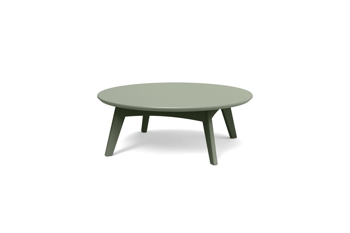 This round outdoor cocktail table is part of Loll Designs' modern Satellite Collection. Made from heavy, 1-inch-thick recycled plastic, it is available in several environmentally conscious colors.