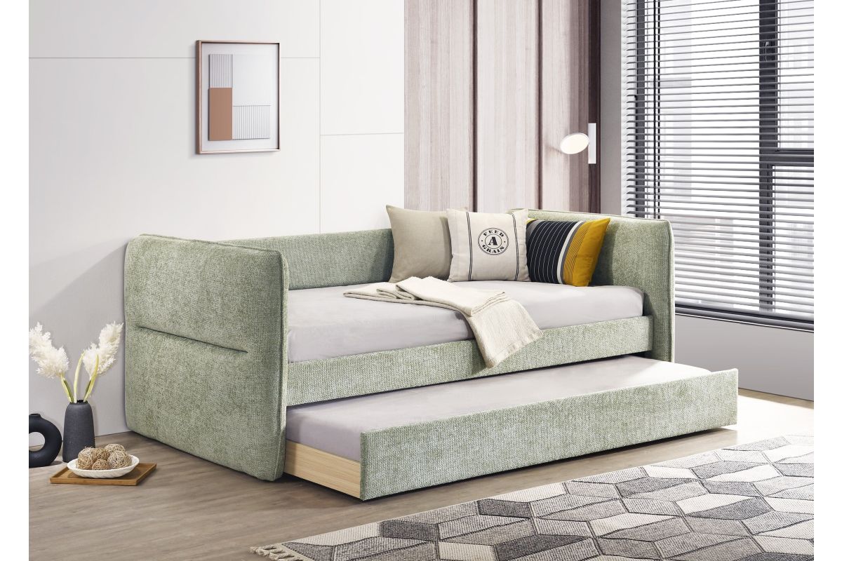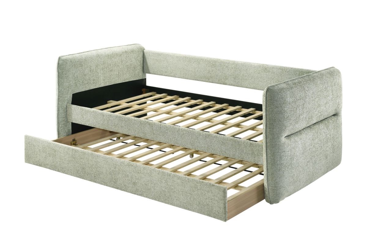 Transform your living space with a striking combination of modern style and practical versatility with the Philipa Light Green Daybed with Trundle by Crown Mark. Envision a sunlit home office or cozy guest nook that radiates fresh energy and restful ambiance — the Philipa Daybed is designed to be the heart of your multifunctional room settings. With its sleek profile, subtle light green upholstery, and inviting silhouette, this daybed brings an air of grace to contemporary apartments, family lounges, and open-plan studios alike. It's the ultimate piece for maximizing both comfort and space, seamlessly adapting from a chic reading lounge in the day to a restful bed for overnight guests. Experience elevated hospitality and everyday relaxation in one beautifully crafted furnishing.