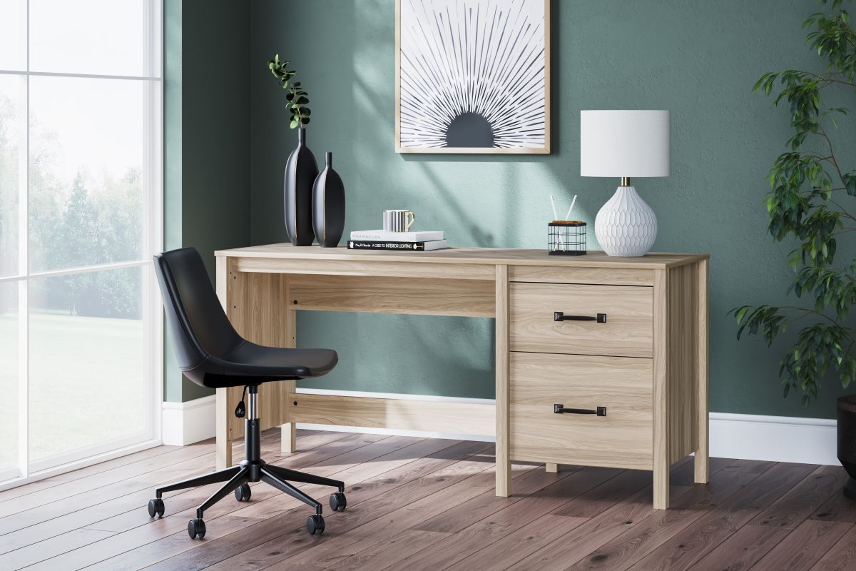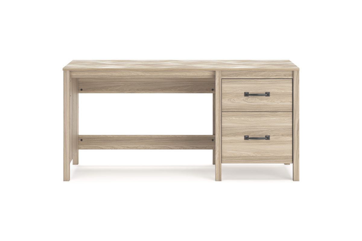 Your home office should reflect your style. Pairing the look of oak grain with a unique chevron pattern, this home office desk introduces a touch of mid-century modern style that's sure to elevate your space. Use this desk as a stand-alone work area, or pair it with the matching desk return to create a larger work surface.