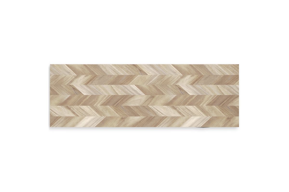 - Two-tone finish (dry, light finish over replicated oak grain; light chevron pattern)