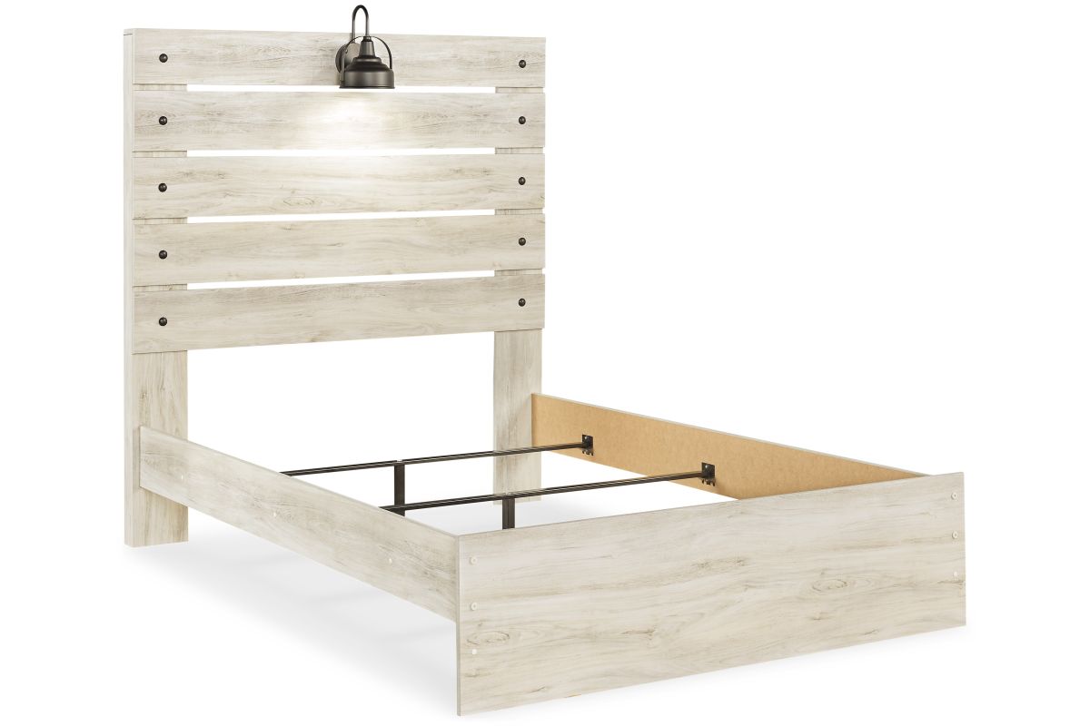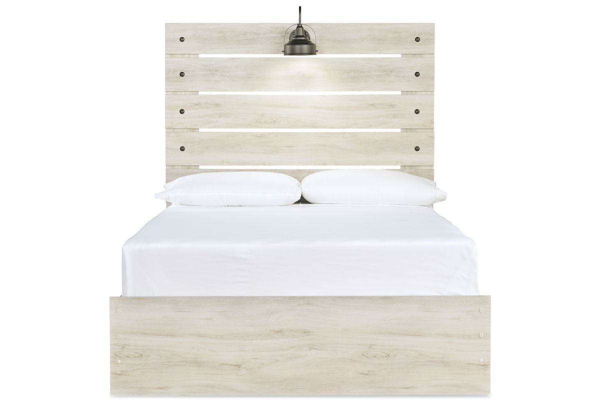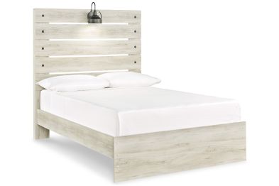 What a delightful take on rustic industrial style. Whether modern loft or modern farmhouse, the Cambeck panel bed makes itself at home. The wispy whitewash palette enhances without covering the grain for that weathered look you crave. Love to read in bed? You’re sure to find the retro-chic light sconces