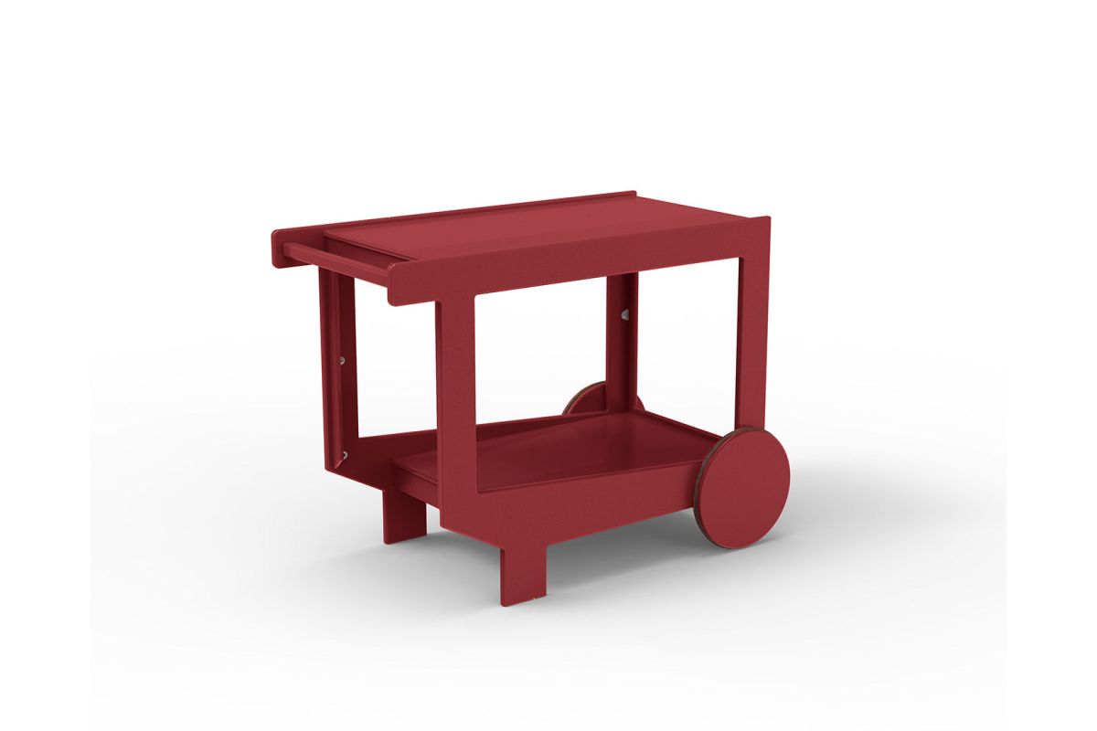 The Lollygagger Bar Cart may not take you and your friends around the city but it will certainly carry your favorite drinks around your deck without a complaint. We designed this cart to partner well with our Lollygagger Collection but it will pair equally well with any modern outdoor furniture, and sometimes it simply likes to carry drinks alone. The large wheels have a non-marking neoprene gasket to help create a smooth roll. Please Bar Cart responsibly.
