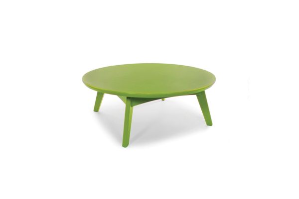 This round outdoor cocktail table is part of Loll Designs' modern Satellite Collection. Made from heavy, 1-inch-thick recycled plastic, it is available in several environmentally conscious colors.